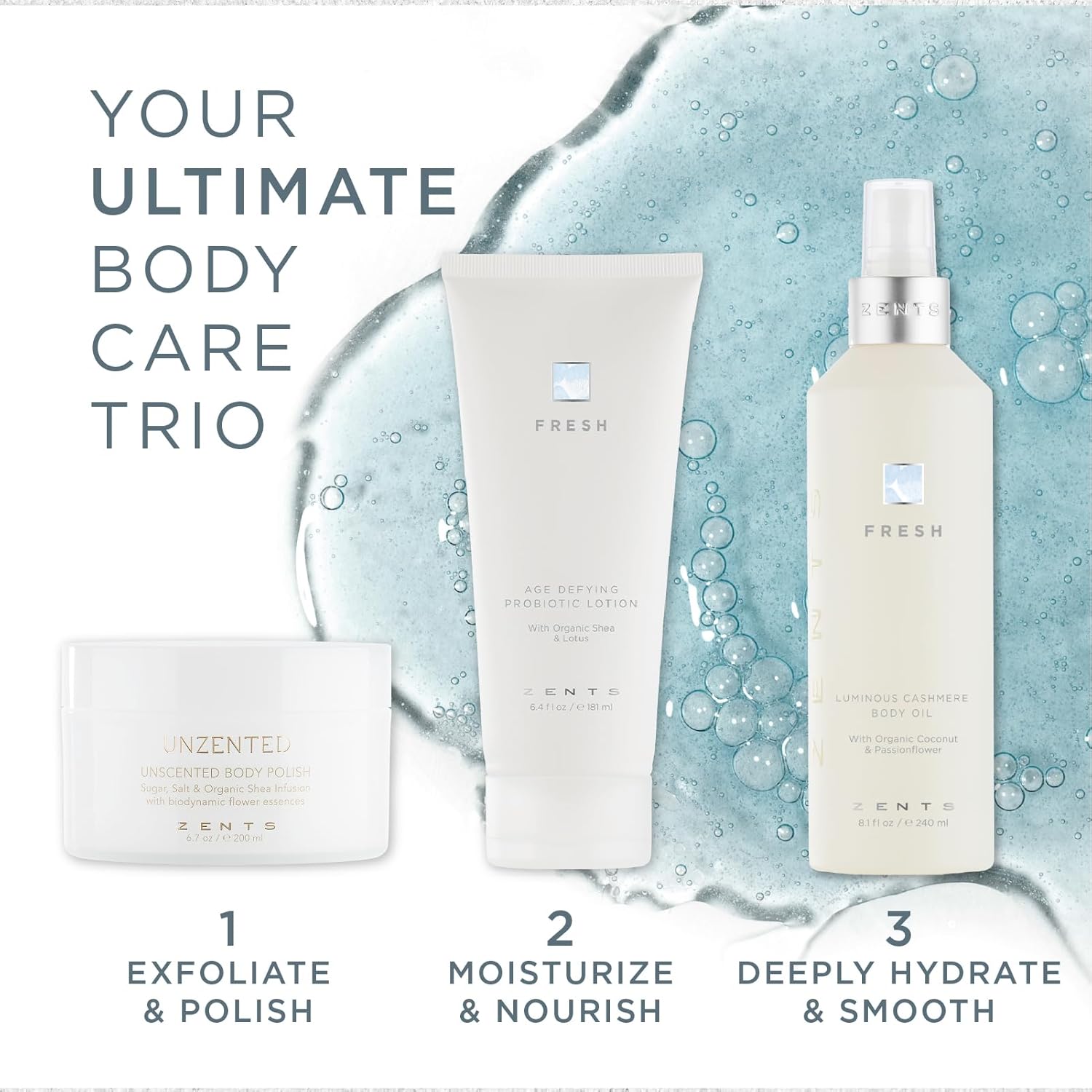 Zents Luminous Cashmere Body Oil (Fresh Fragrance) | Moisturizing Body Oil with Vitamin E & Organic Coconut Oil | Softens & Smooths Skin | 8 fl oz