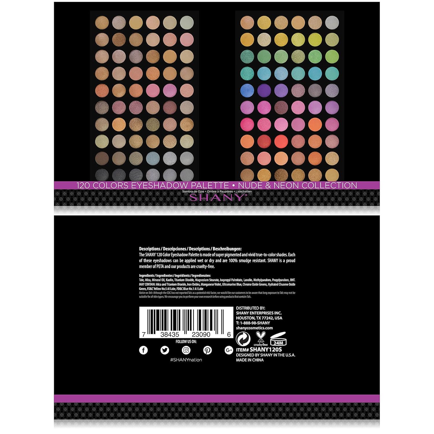 - SHANY Ultimate Fusion Makeup Palette Includes: 120 Neutral and nude eyeshadow colors. Includes 60 nude eyeshadow colors and 60 Neutral eyeshadow colors. Highly pigmented when applied wet or dry, they are neatly assembled in a slender Makeup palette.