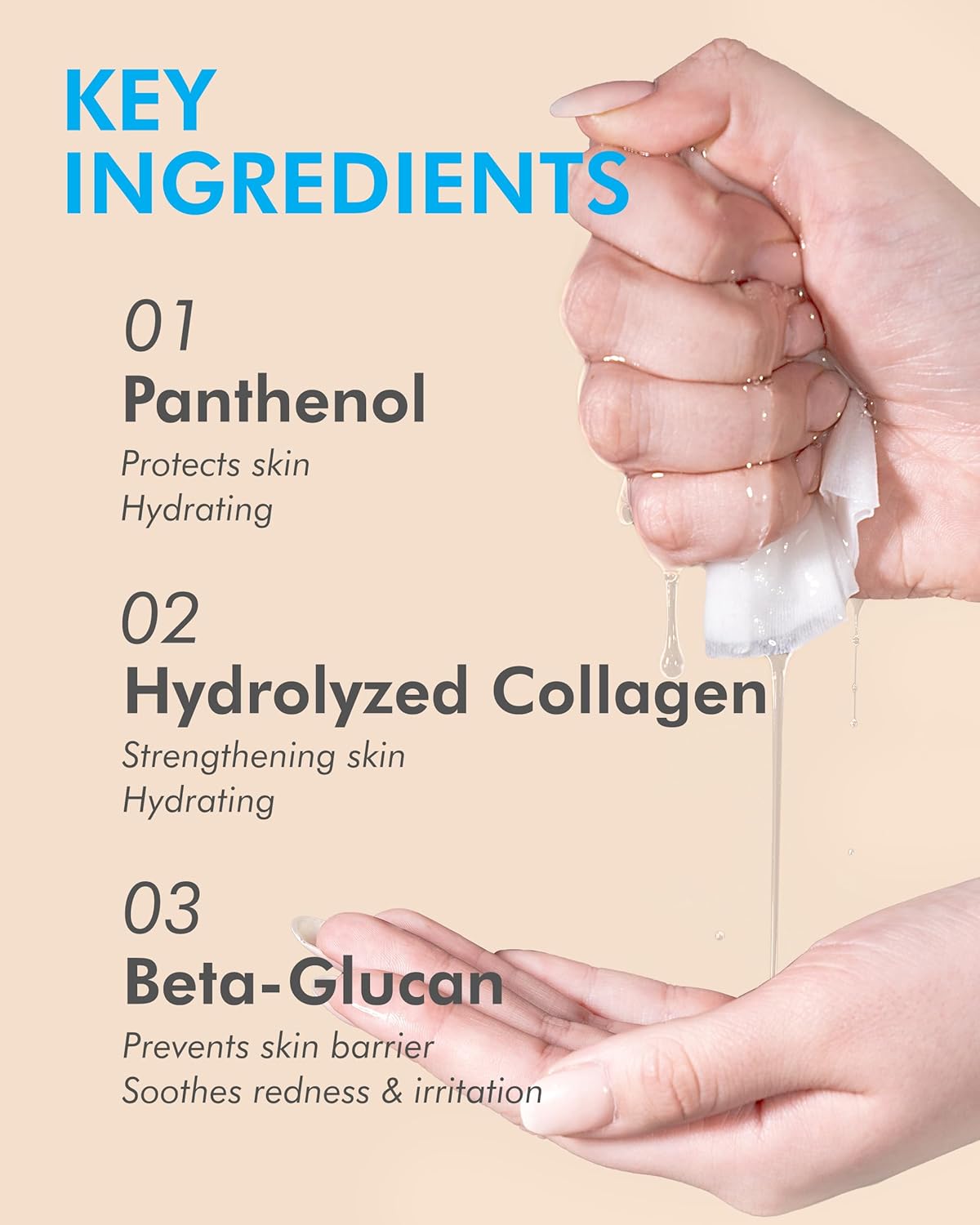 - POWERFUL SKIN NOURISHMENT: Experience the potent combination of hydrolyzed collagen (2,000 ppm), vitamin E, panthenol, and beta-glucan. Together, these ingredients deeply nourish the skin, leaving it soft and resilient against daily stressors.