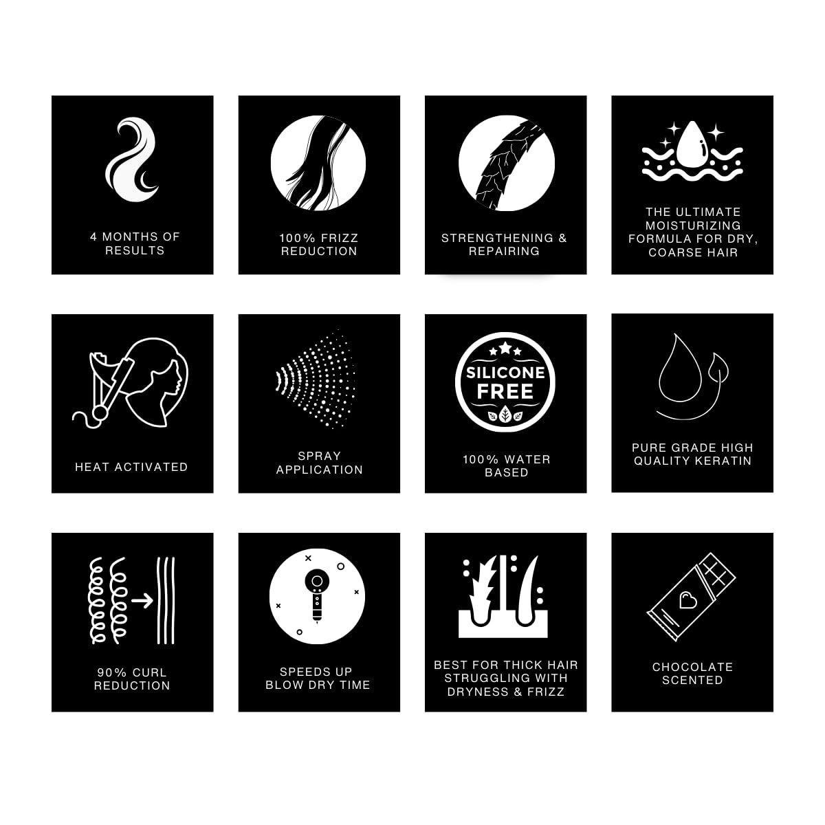 - Keratin & Cacao Oil Infused: This anti frizz hair product luxurious treatment is packed with Keratin to strengthen and repair hair while Cacao Oil deeply nourishes and moisturizes, restoring health and vitality. It enhances your hair’s natural shine, making it look vibrant and smooth from root to tip.