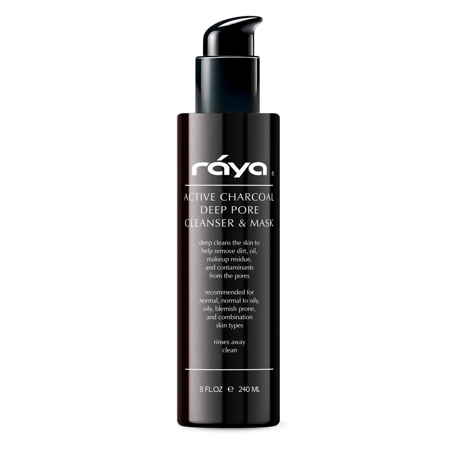 Raya Active Charcoal Deep Pore Facial Cleanser and Mask (121) | Deep Pore Cleansing Fluid for Combination, Oily, and Blemished Skin | Can Be Used as a Deep Pore Detox Mask for Combination Skin