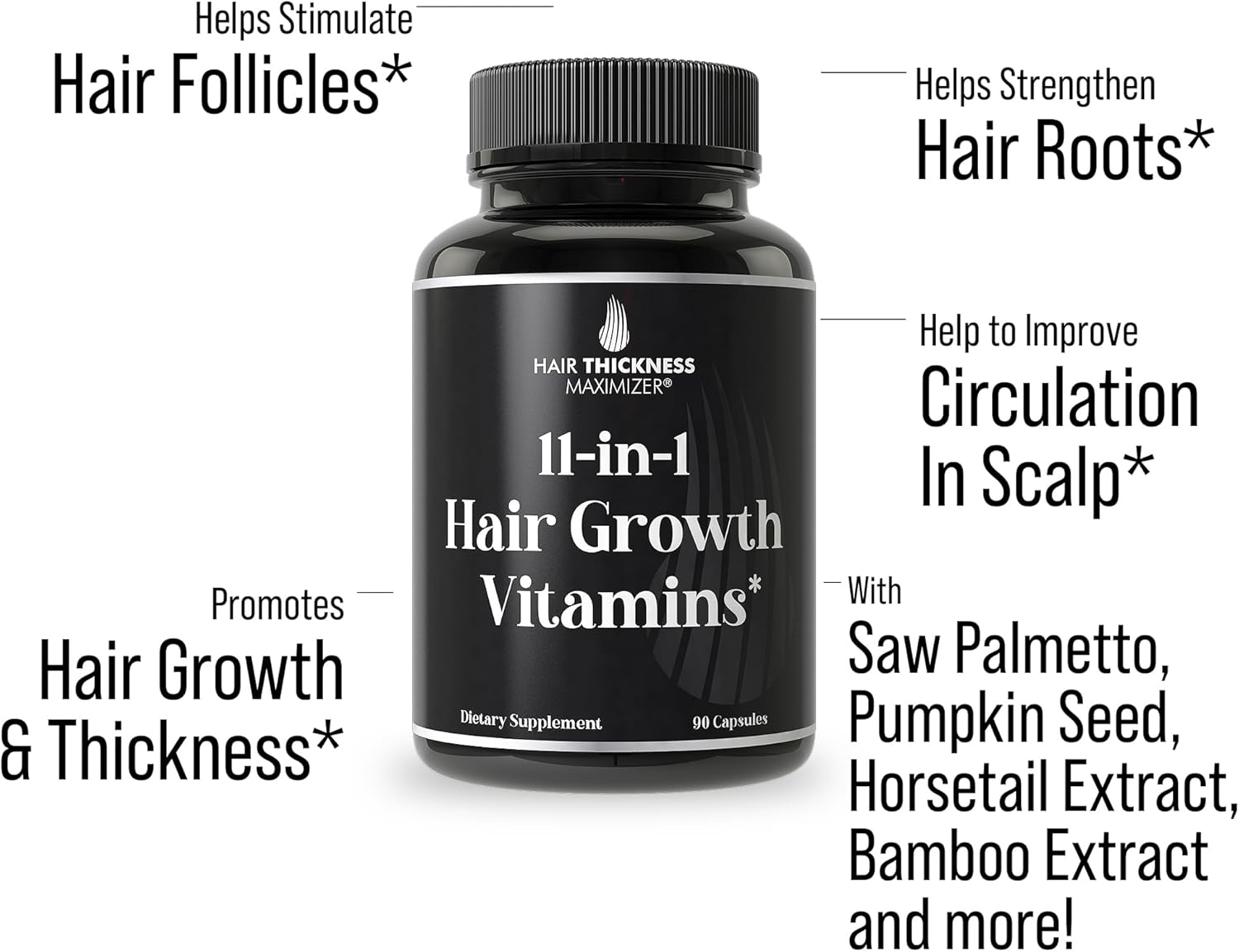 - Quality You Can Trust: Made in the USA following top-notch GMP standards, our hair vitamins are gluten-free and free from harsh chemicals. Hair Thickness Maximizer ensures every capsule in this 90-count pack is pure and effective, helping you achieve the hair of your dreams safely and naturally