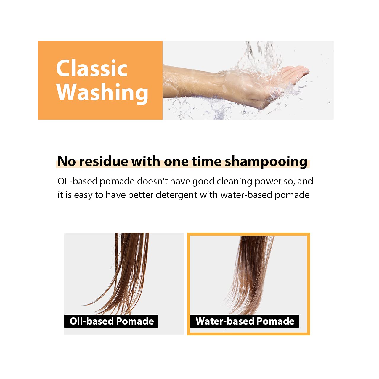 - With WATER BASE MATERIAL, you can easily wash hair without grease