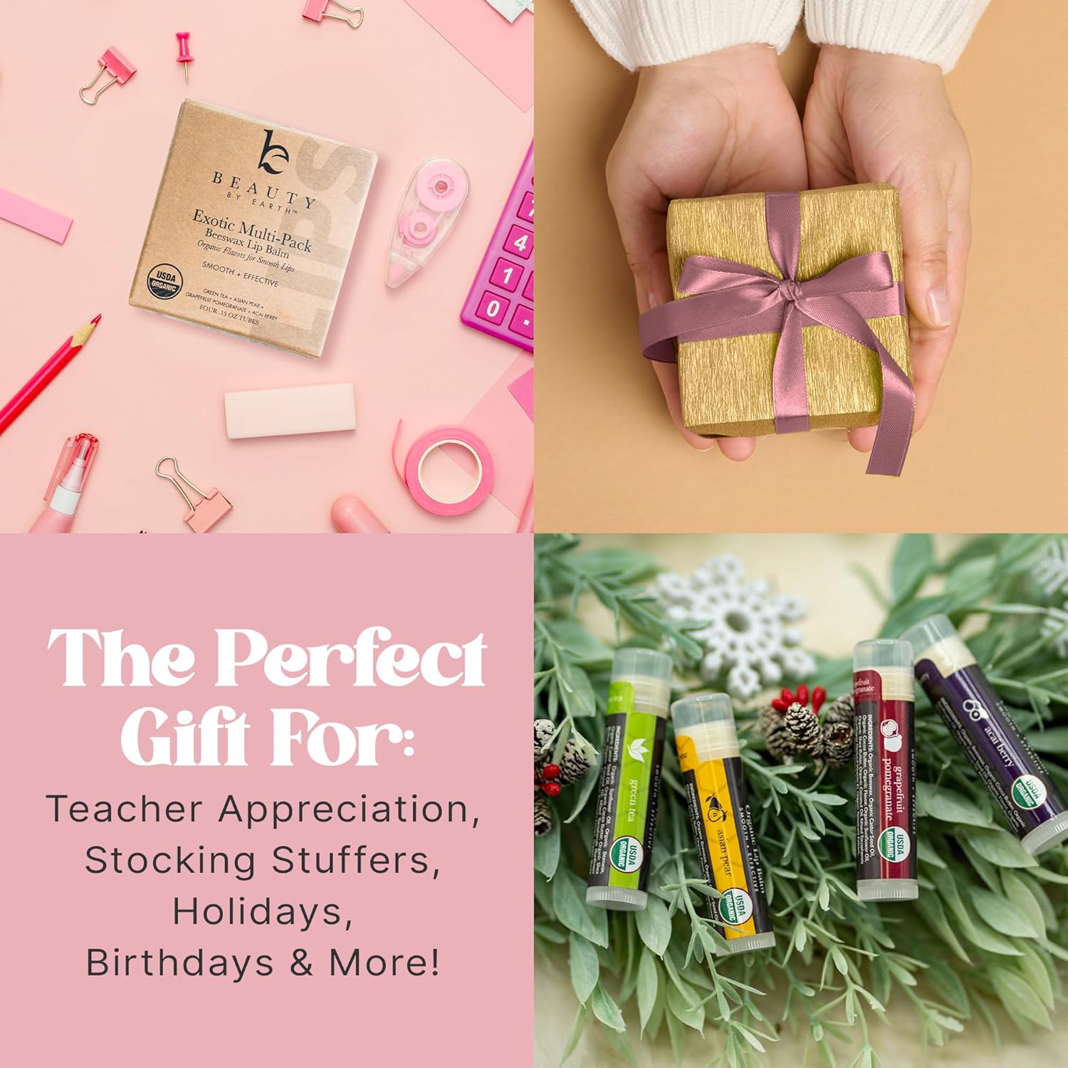 USDA Organic Lip Balm - USA Made with Natural Ingredients, 4 Pack Multi Flavor Lips Moisturizer, Moisturizing Lip Care, Beauty Gifts & Small Birthday Gifts, Moisturizer Chapstick Care for Dry Lips