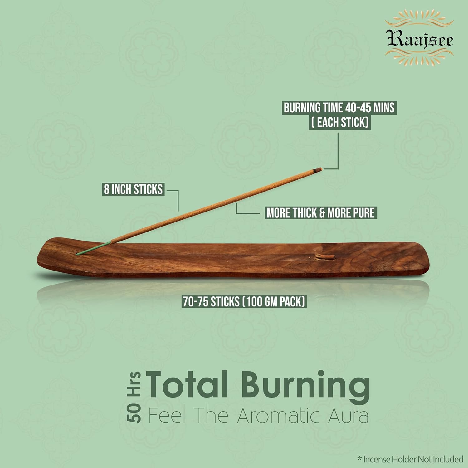 - LONG LASTING - Length— 8 to 8.5 inch, Diameter--0.1in,100gm pack (Approx 75 pc Count per Box) Each natural stick burns for 45 mins (indoor environment)