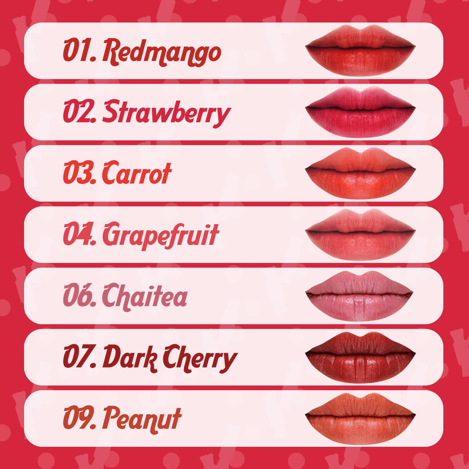- POWDERY MATTE FINISH: The thin and light mousse texture offers soft and easy gliding with a matte finish. This natural lip stain delivers color and healthy hydration. Our lipstick is formulated to suit every lip type and color as the nutrients in our lip tint conditions and protect lips from unrestrained radicals.