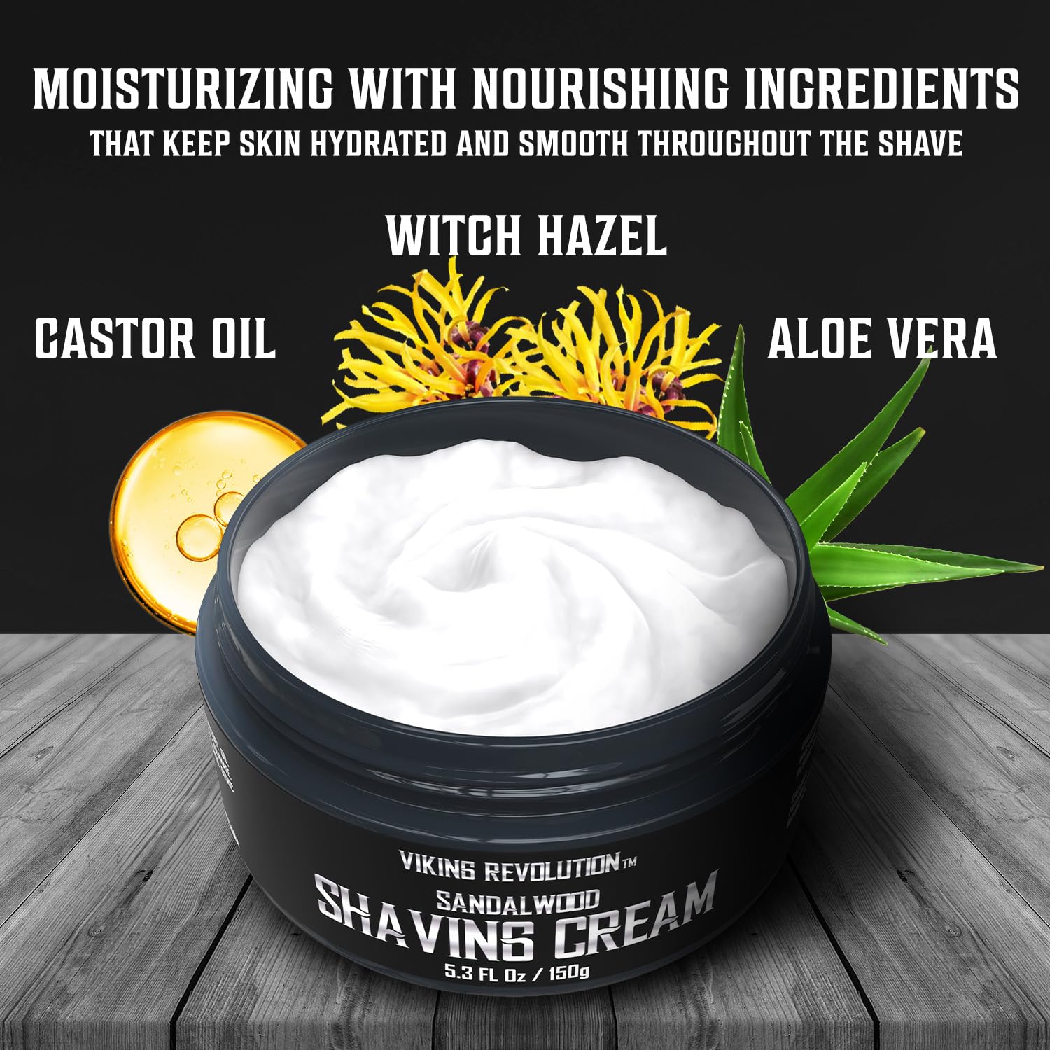 Viking Revolution Luxury Shaving Cream for Men- Sandalwood Scent - Soft, Smooth & Silky Shaving Soap - Rich Lather for the Smoothest Shave - 5.3oz