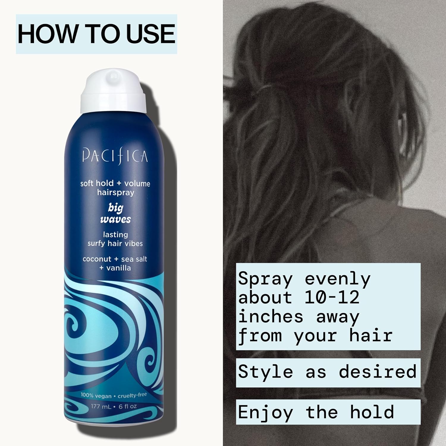 Pacifica Beauty Big Waves Coconut, Vanilla & Sea Salt Hairspray, Controls Frizz & Adds Volume, Designed for Wavy Hair, Vegan & Cruelty-Free, 6 Fl Oz