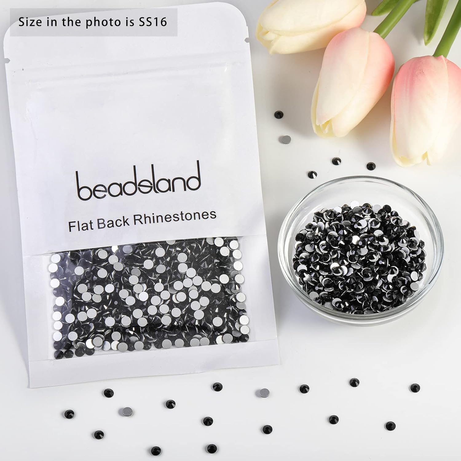 beadsland 1440 Piece Flat Back Crystal Rhinestones Round Gems,1.3mm-6.5mm, Black(SS16(3.8-4.0mm))