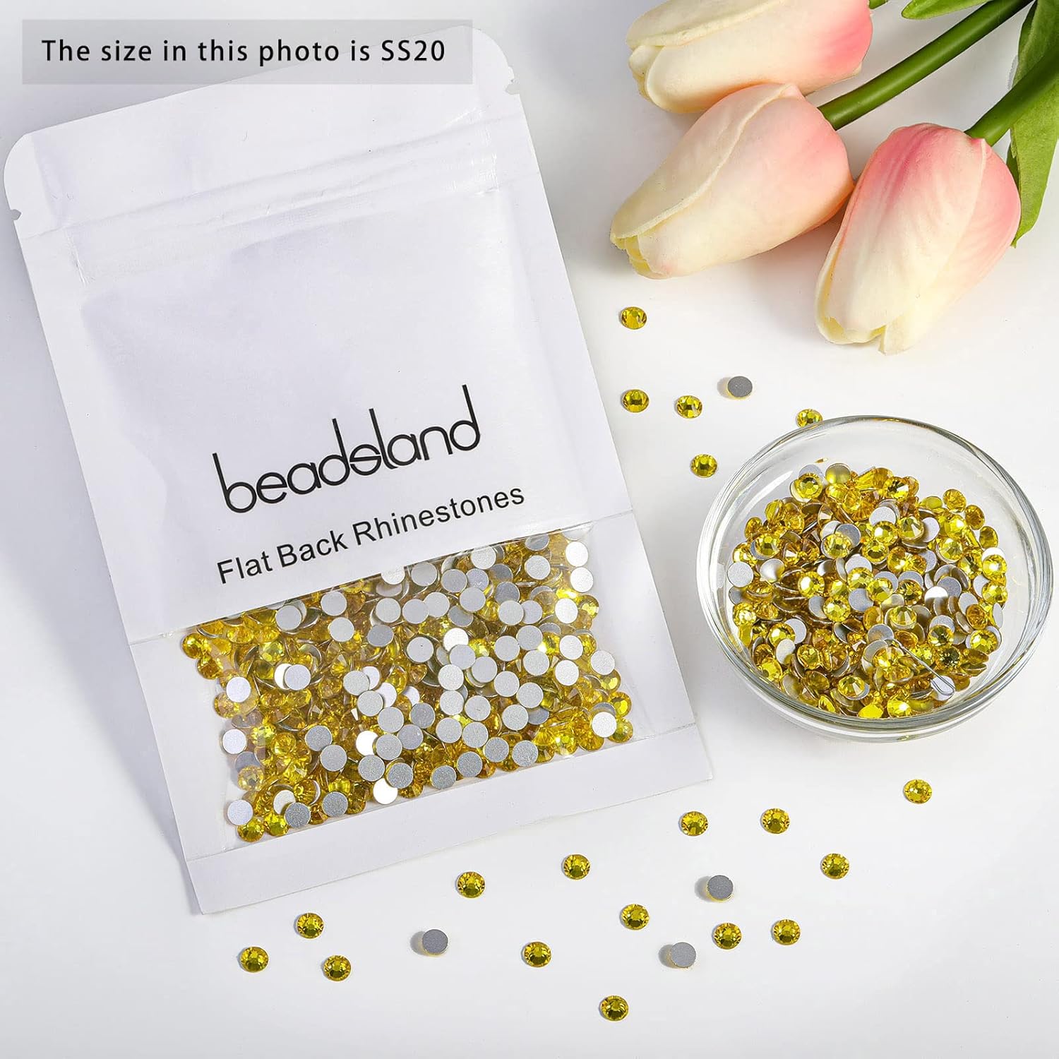 beadsland Flat Back Crystal Rhinestones Round Gems, Lemon Yellow (4.6-4.8mm) SS20/1440pcs
