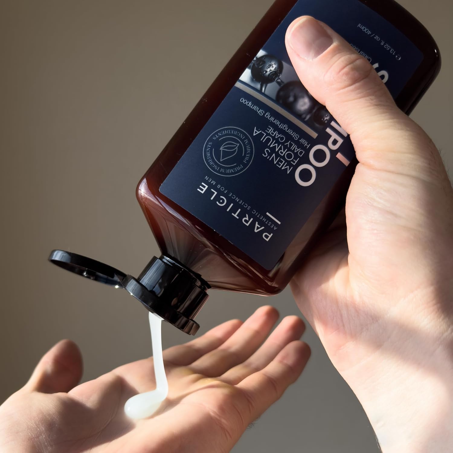 Particle Hair Thickening Shampoo for Men, Men’s Shampoo, Cleansing Formula Made with Biotin, Capixyl, Redensyl, Ginseng and Green Tea Extract for Hair Strength Support, Paraben Free, 400 mL