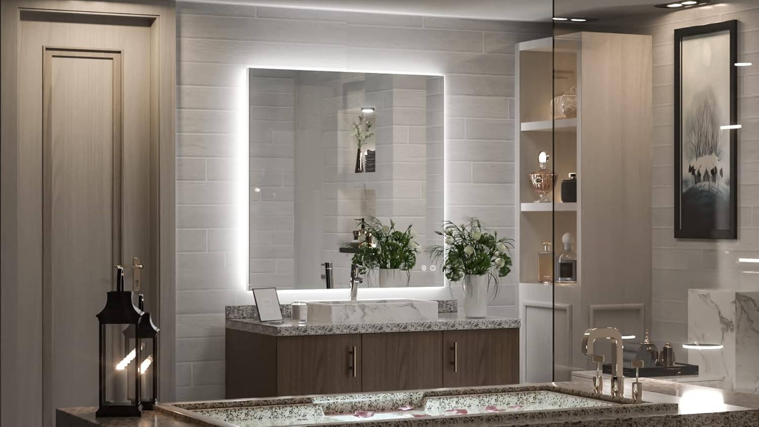 TETOTE 36 x 36 Inch LED Backlit Mirror with Light Bathroom,Anti-Fog,Dimmable,CRI90+,IP 54Water Proof,Vanity Mirror with Light,Wall Mounted,Horizontal/Vertical