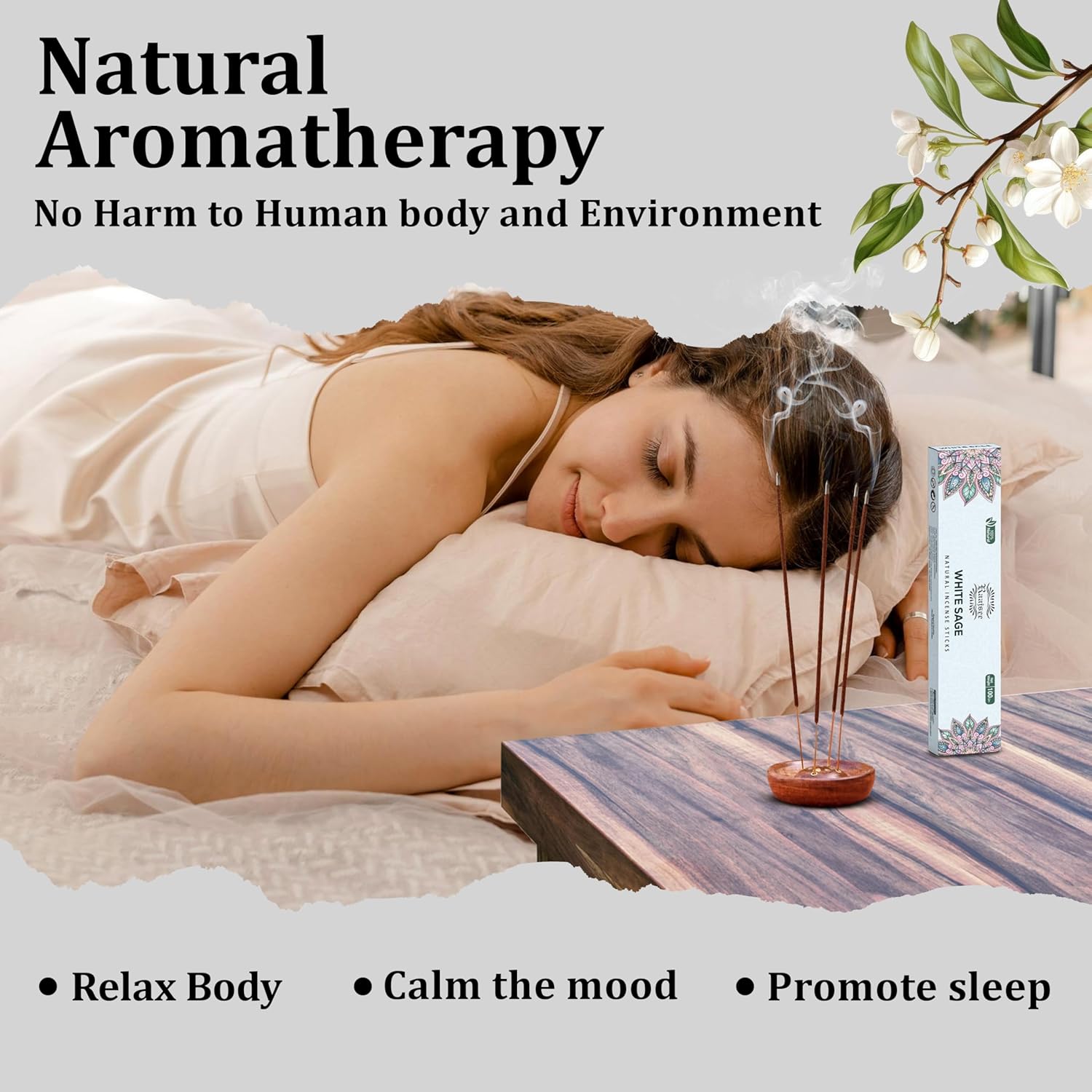 Raajsee White Sage Incense Sticks (180 gm), 100% Pure Organic Natural Hand Rolled Free from Chemicals - Perfect for Aromatherapy, Cleansing, Meditation, and Church (Pack of 12)