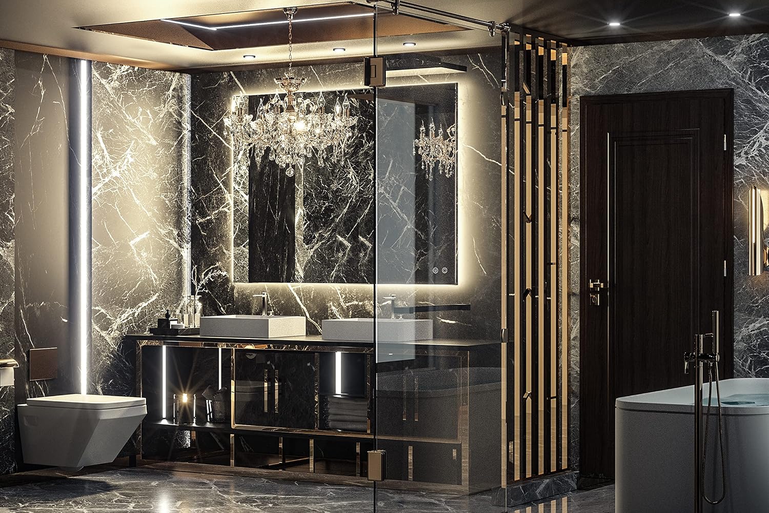 - ✨【Perfect bathroom mirror】-U.S Design Environmental Friendly,Copper free HQ Silver coating glass with IP54 waterproof LED ensures 100% safety in wet bathroom.