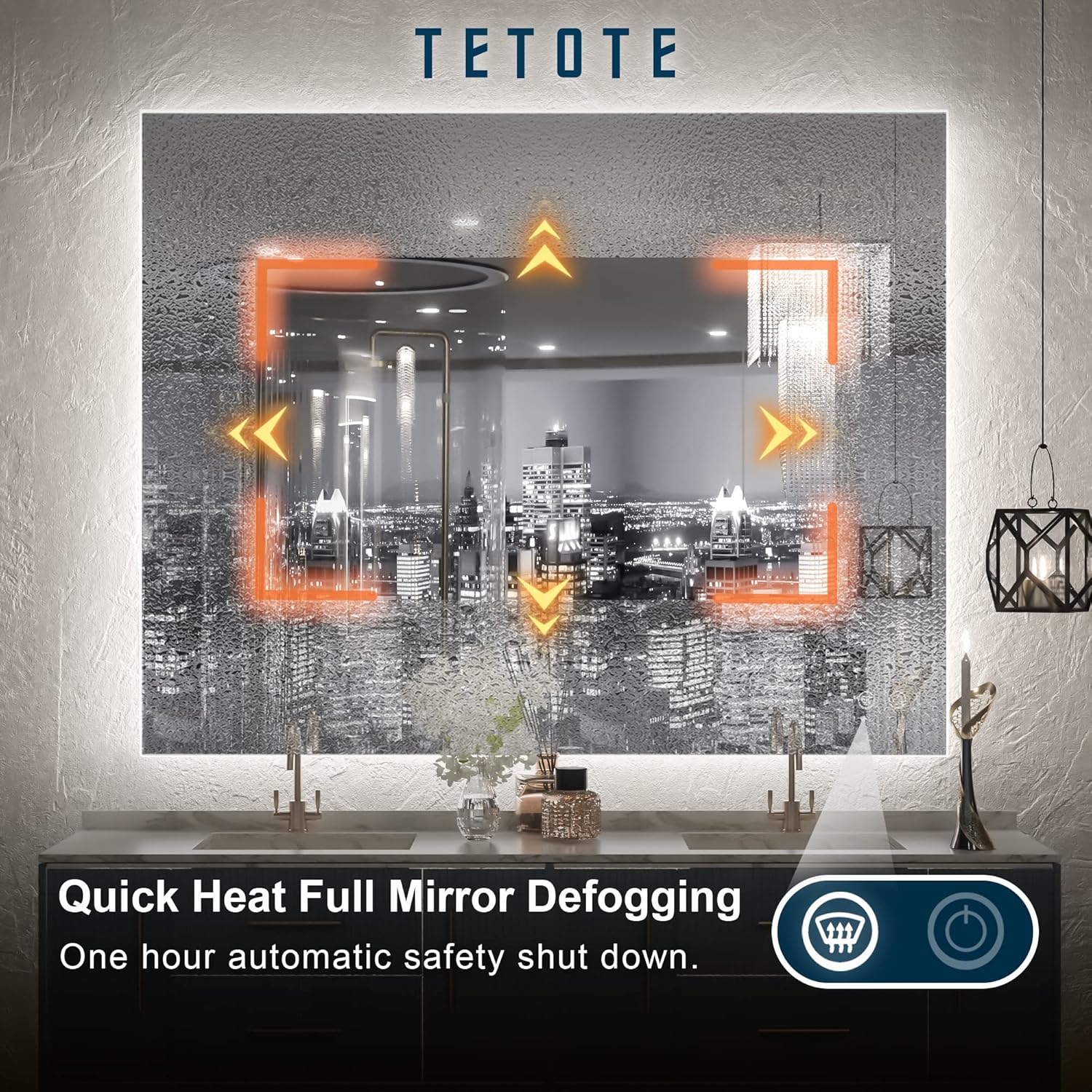 TETOTE 40 x 32 LED Backlit Bathroom Mirror with Light,3Color White/Warm/Natural,Anti-Fog Lighted Mirror,Dimmable,Vanity Mirror,Wall Mounted
