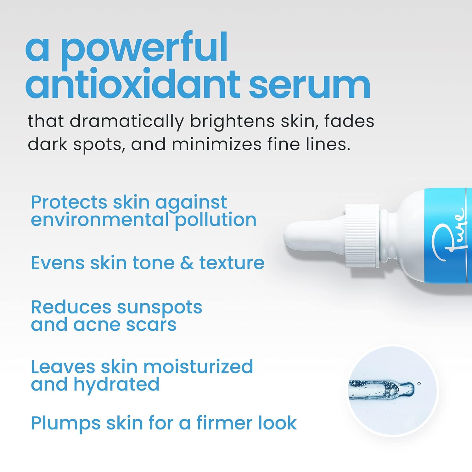 - What It Is: Powerful antioxidant serum that dramatically brightens skin, fades dark spots, and minimizes visible fine lines.