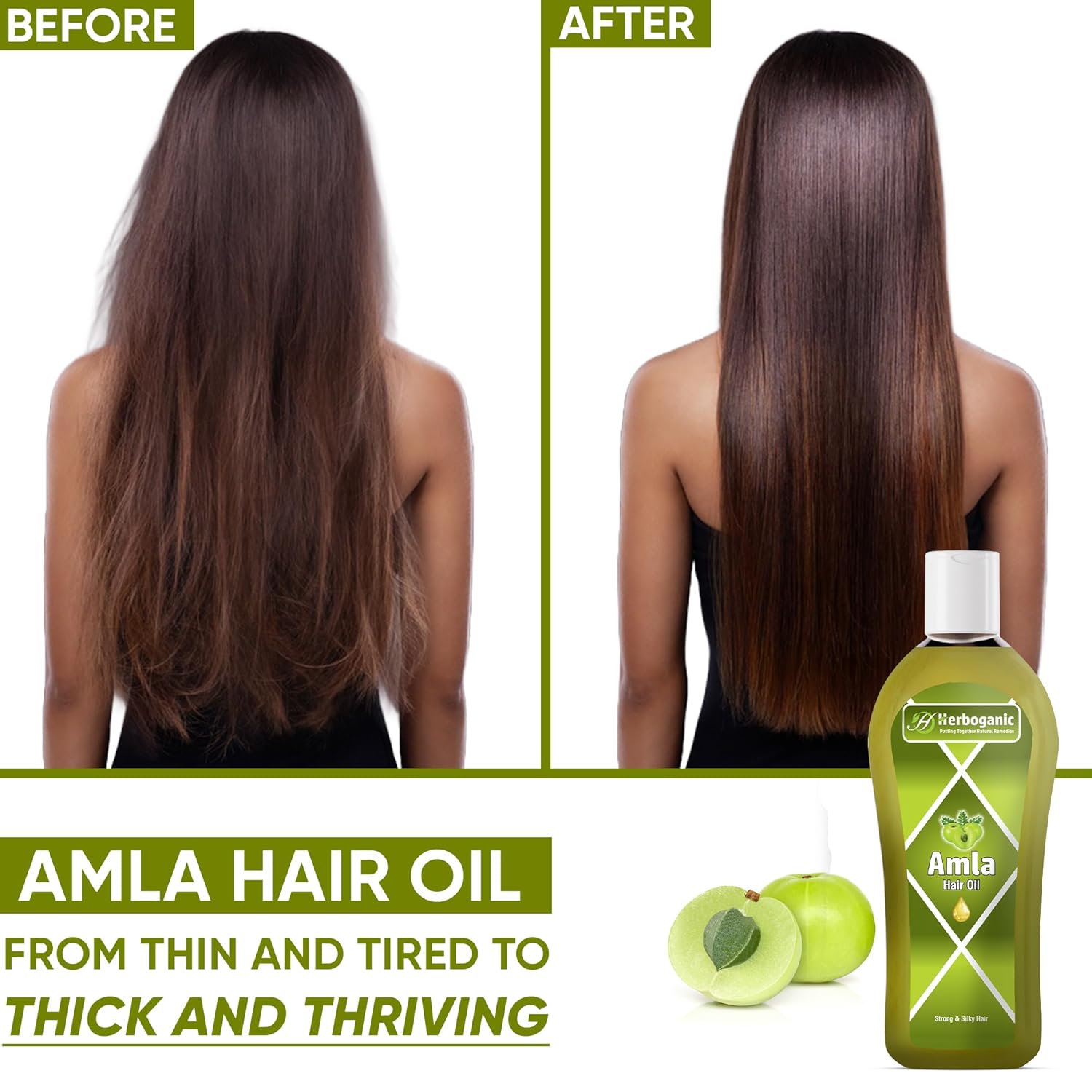 - NATURAL HAIR GROWTH: Amla Herbal Hair oil is natural oil used for hair growth made from drying Indian Gooseberry and soaking it in a base oil. The oil is filtered and purifired. Completely pure with absolutely no additives. Naturally hydrate, refresh, revitalize, and rejuvenate your hair.