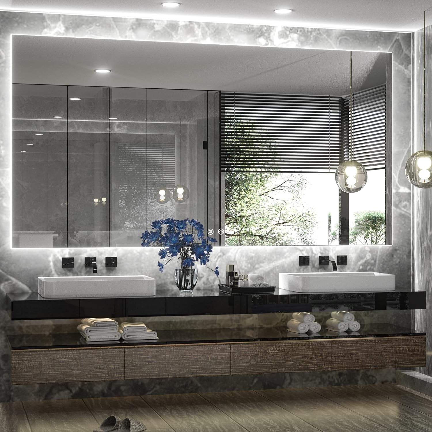 - ✨【Perfect bathroom mirror】-U.S Design Environmental Friendly,Copper free HQ Silver coating glass with IP54 waterproof LED ensures 100% safety in wet bathroom.
