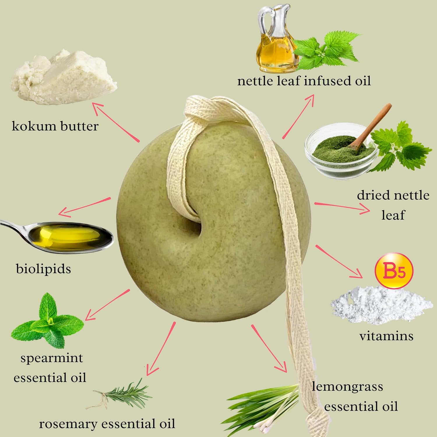 - Herbal with Nettle Leaf shampoo bar hydrates hair without weighing it down for softness that's never greasy.
