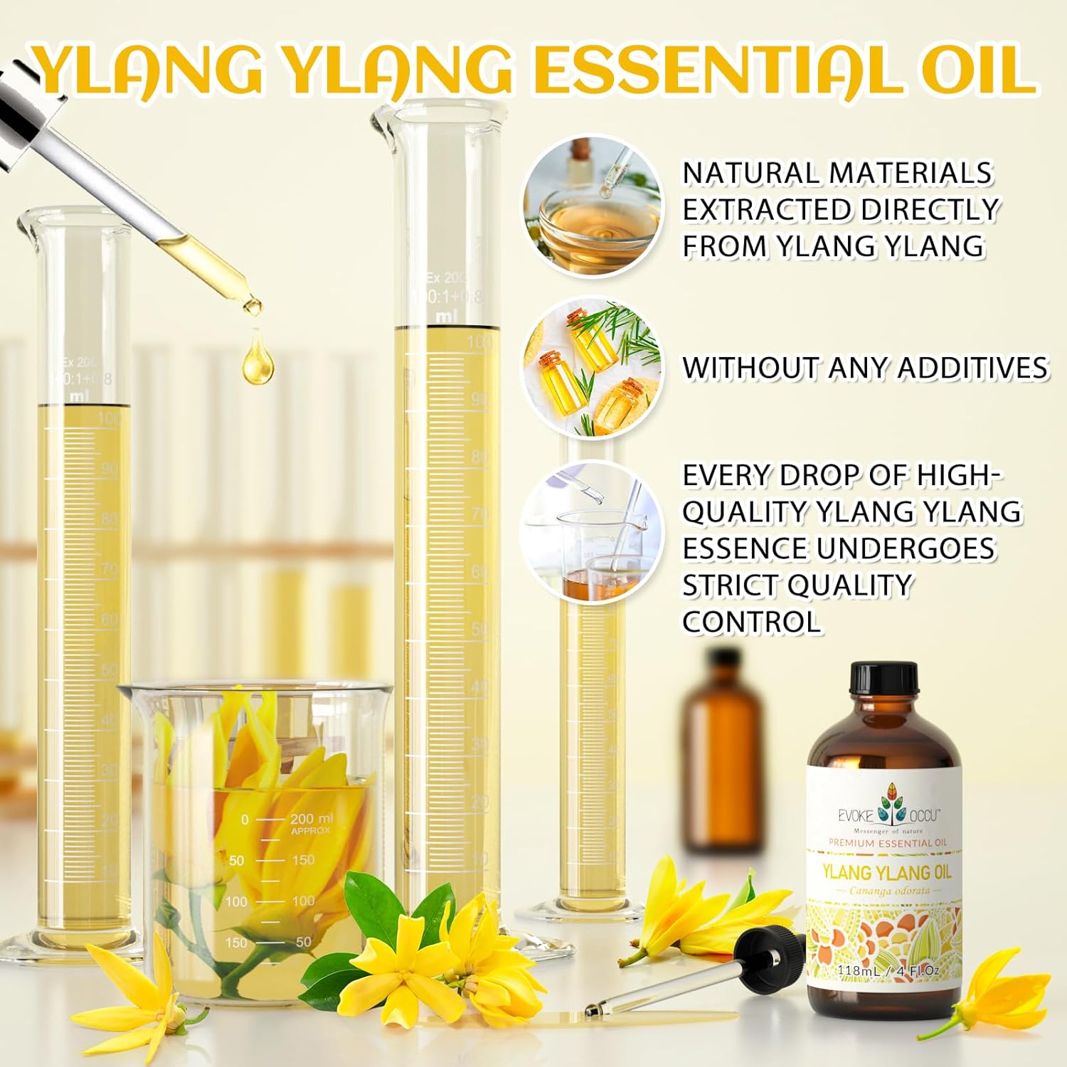 EVOKE OCCU Ylang Ylang Essential Oil 4 Oz, Pure Ylang Ylang Oil for Skin Hair Aromatherapy Diffuser Fragrance DIY- 4 FL Oz