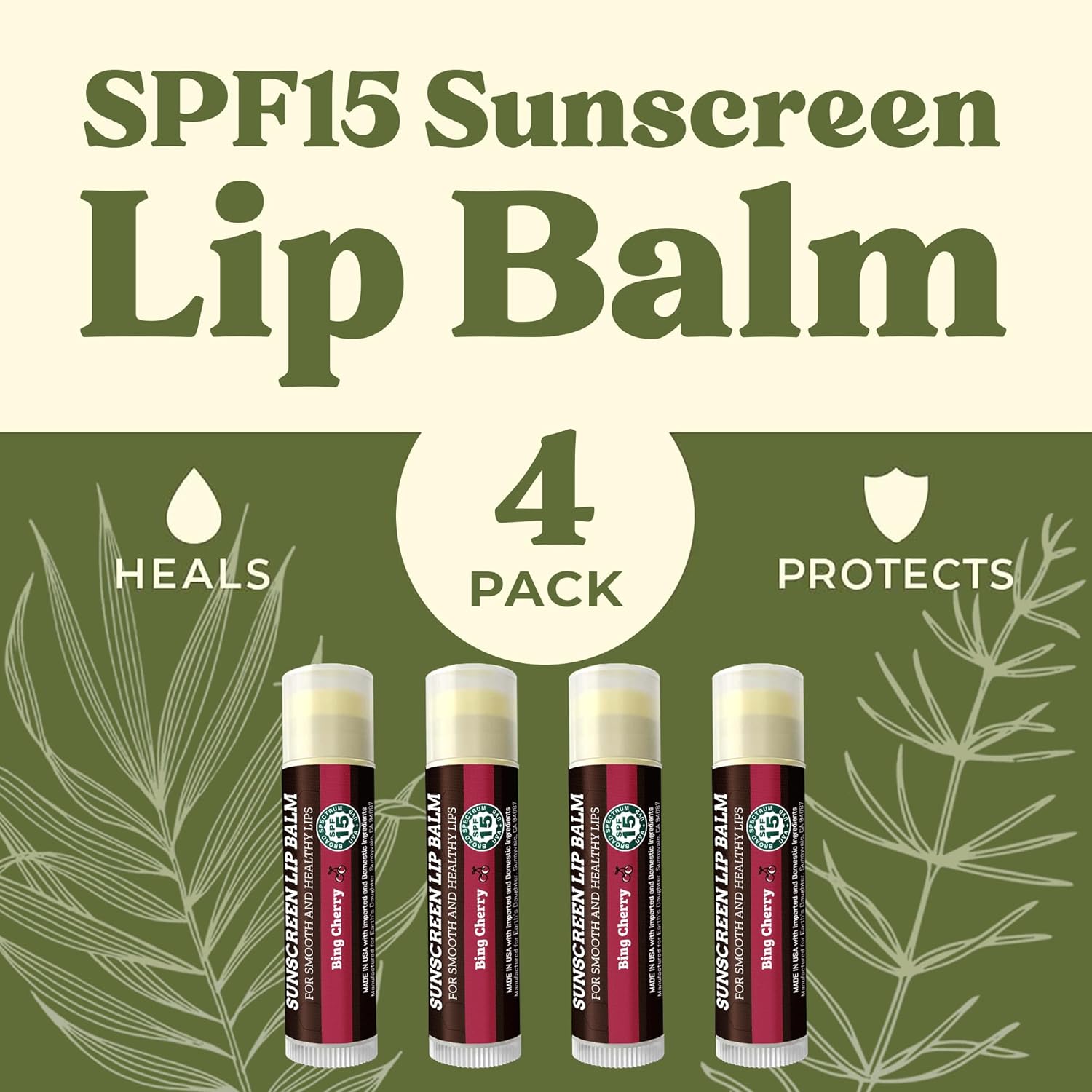 - 4 PACK of SPF 15 SUNSCREEN LIP BALM – Delicious Cherry Flavor. Everyone loves our cherry lip balm with SPF 15 sun protection, organic beeswax, organic coconut oil and other premium organic hydrating ingredients to protect and moisturize all day long. Our lip balm is great for everyday protection and safe for the whole family