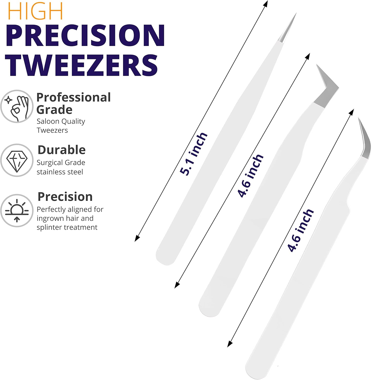 SIVOTE Lash Tweezers for Eyelash Extensions, Hand Calibrated Straight & Curved Tip, Pack of 3, White