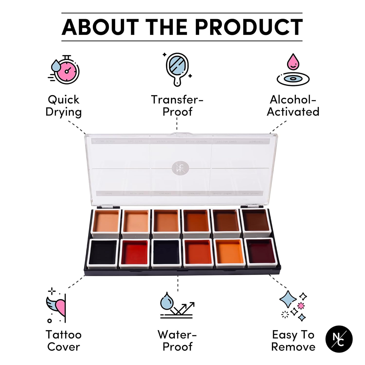 - Product Benefits : Create realistic and adjustable makeup effects with 12 pigmented colors and alcohol-activated formula Create realistic and adjustable makeup effects with 12 pigmented colors and alcohol-activated formula