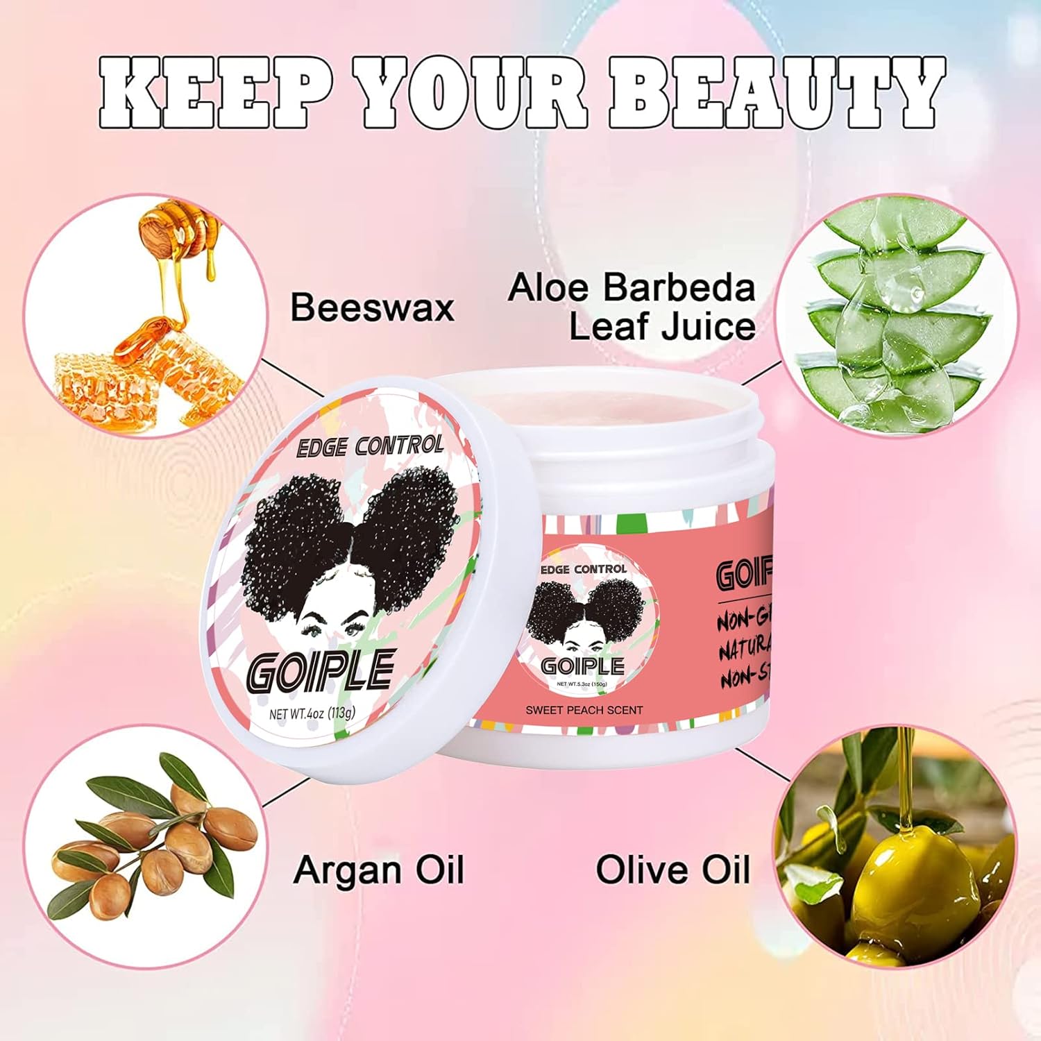 - Natural & Organic Ingredients: Our edge control wax will not damage your hair and will nourish your hair while styling it, keeping it moisturised, soft and smooth.
