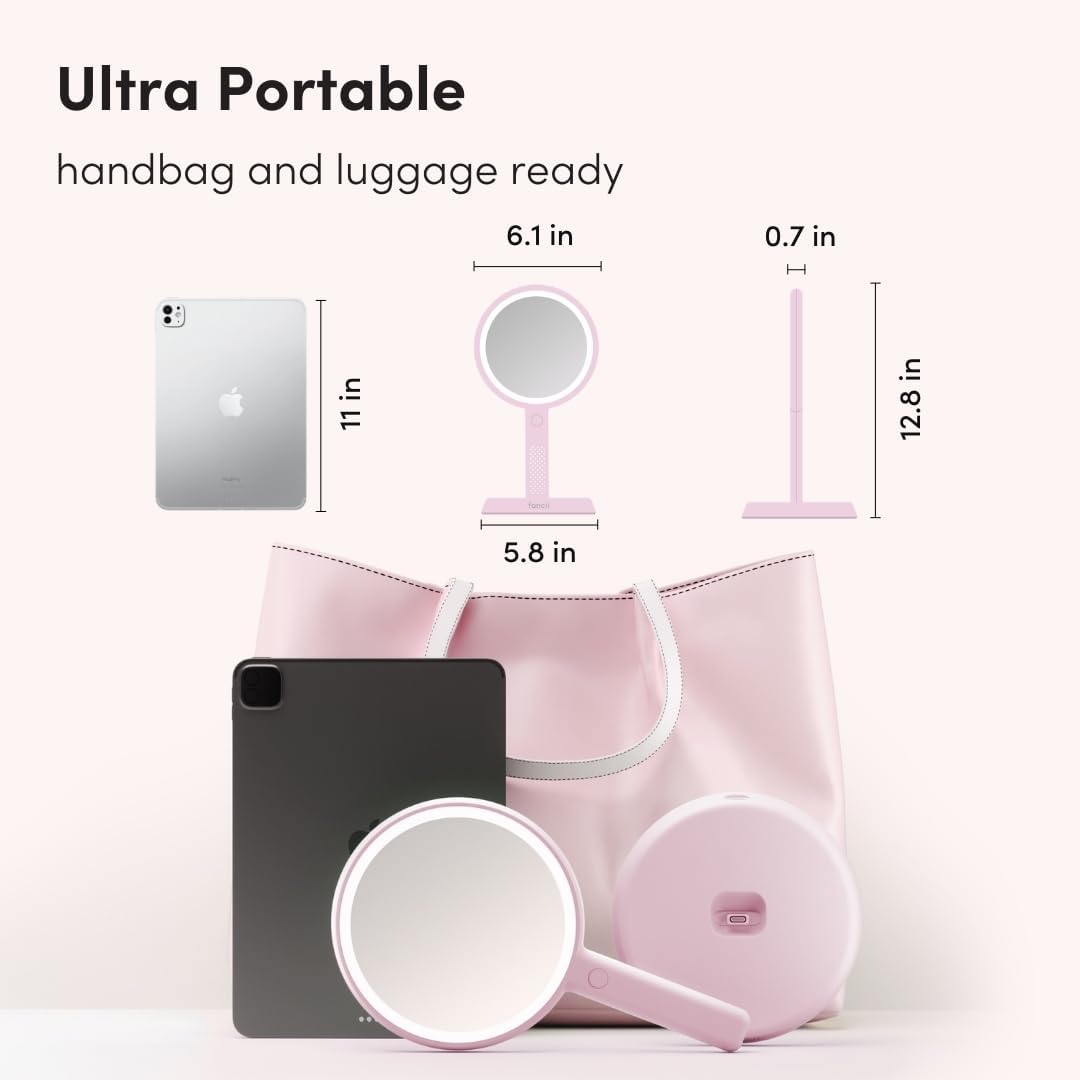 - Handheld & Hands-Free – Use Cami as a handheld mirror or attach it to the included stand for a vanity setup. The stand tilts up to 30° for hands-free, precise makeup and grooming.