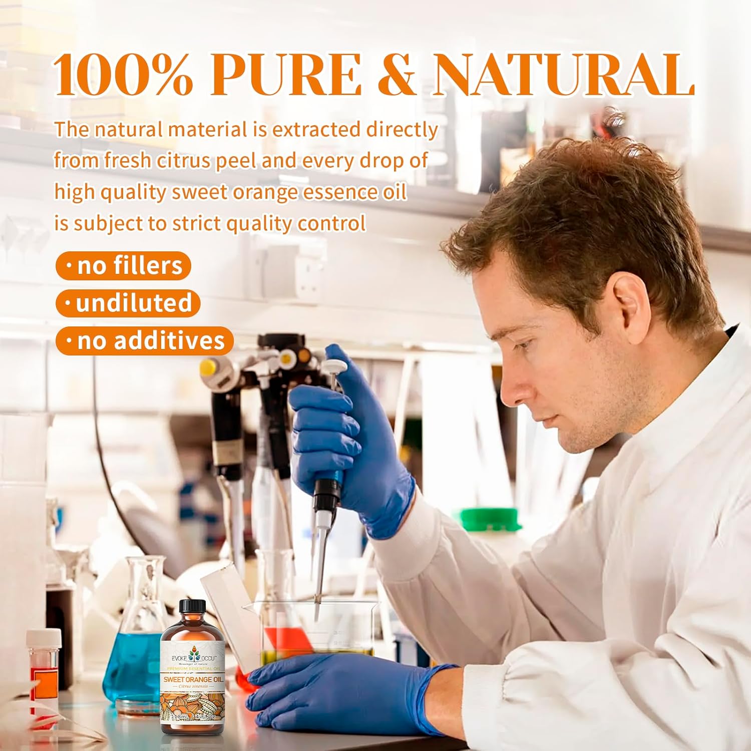 - Sweet Orange Essential Oil: Citrus, fresh, sweet, warm. 100% Pure sweet orange oil, extracted from fresh citrus peel by cold pressing, undiluted, no additives, no fillers