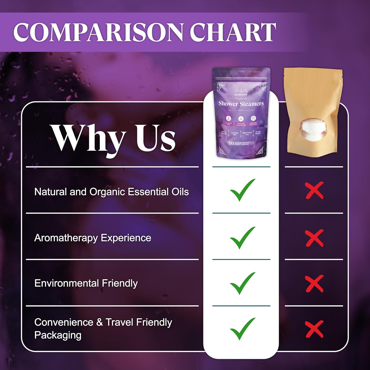 - On-the-Go Relaxation with Aromatherapy – Whether you're traveling, living in a college, or simply winding down after a busy day, our organic shower steamers offer the perfect way to relax and recharge. Infused with natural essential oils, each tablet delivers a spa like aromatherapy experience that helps release stress, calm your mind, and prepare your body for restful sleep