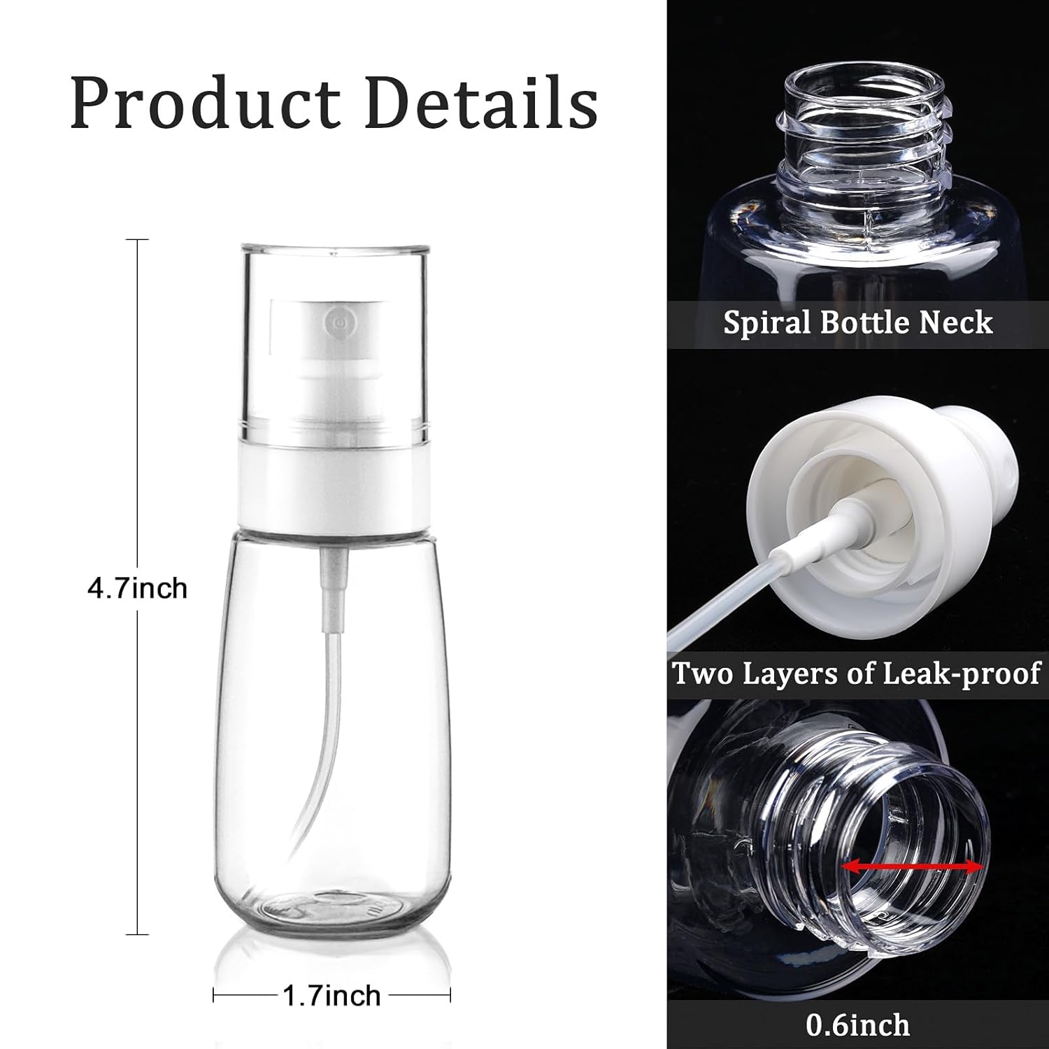 - Leak-proof Travel Spray Bottles: Our spray bottle adopts the design of sealing screw bottle neck and sealing ring, which can effectively reduce the gap and enhance the air tightness.
