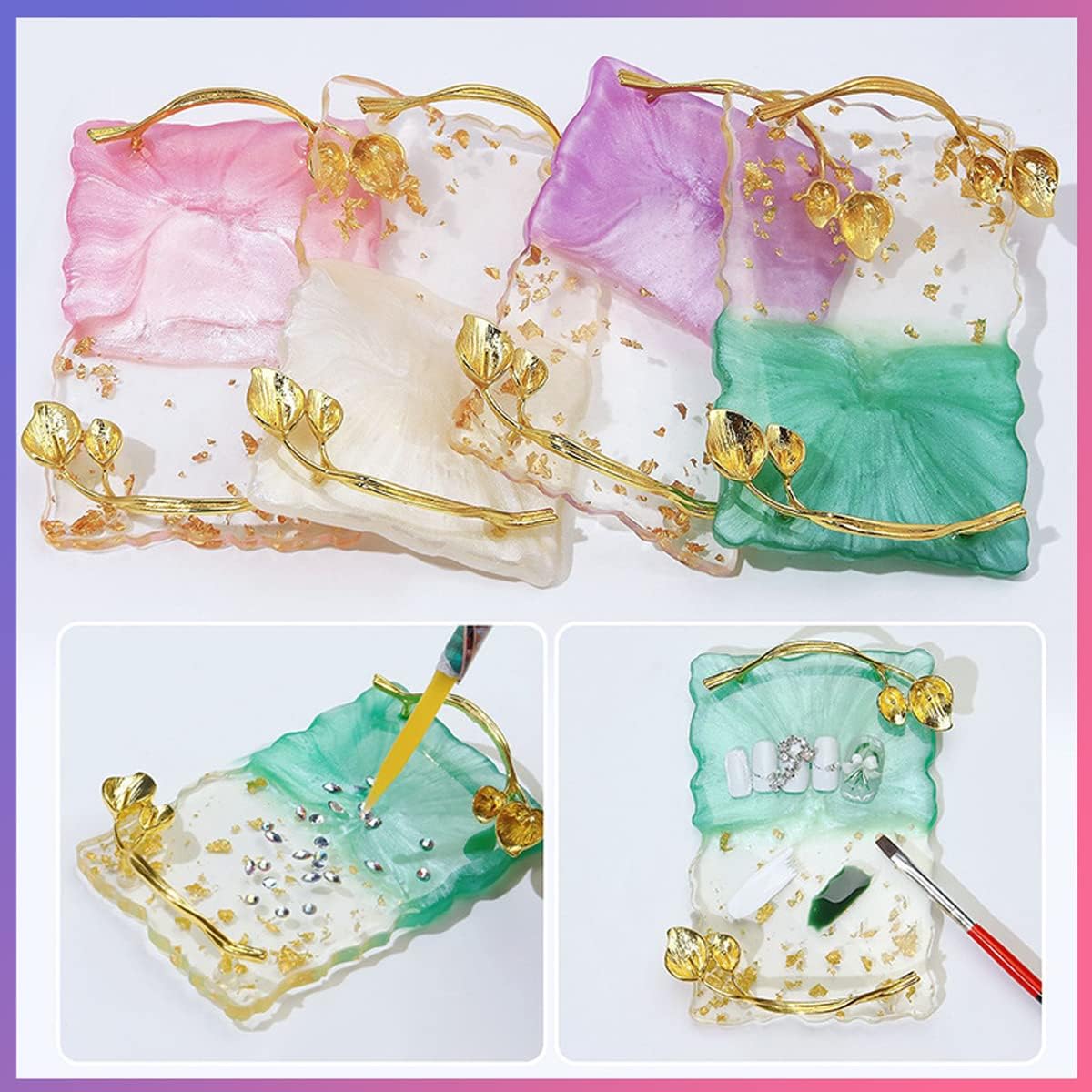 - Exquisite Design: Perfect resin manicure palette that mixes nail color, which helps maintain pigment. Rectangle shape, translucent and half-color, gold leaves handle design, beautiful color and comfortable texture, superior and exquisite.