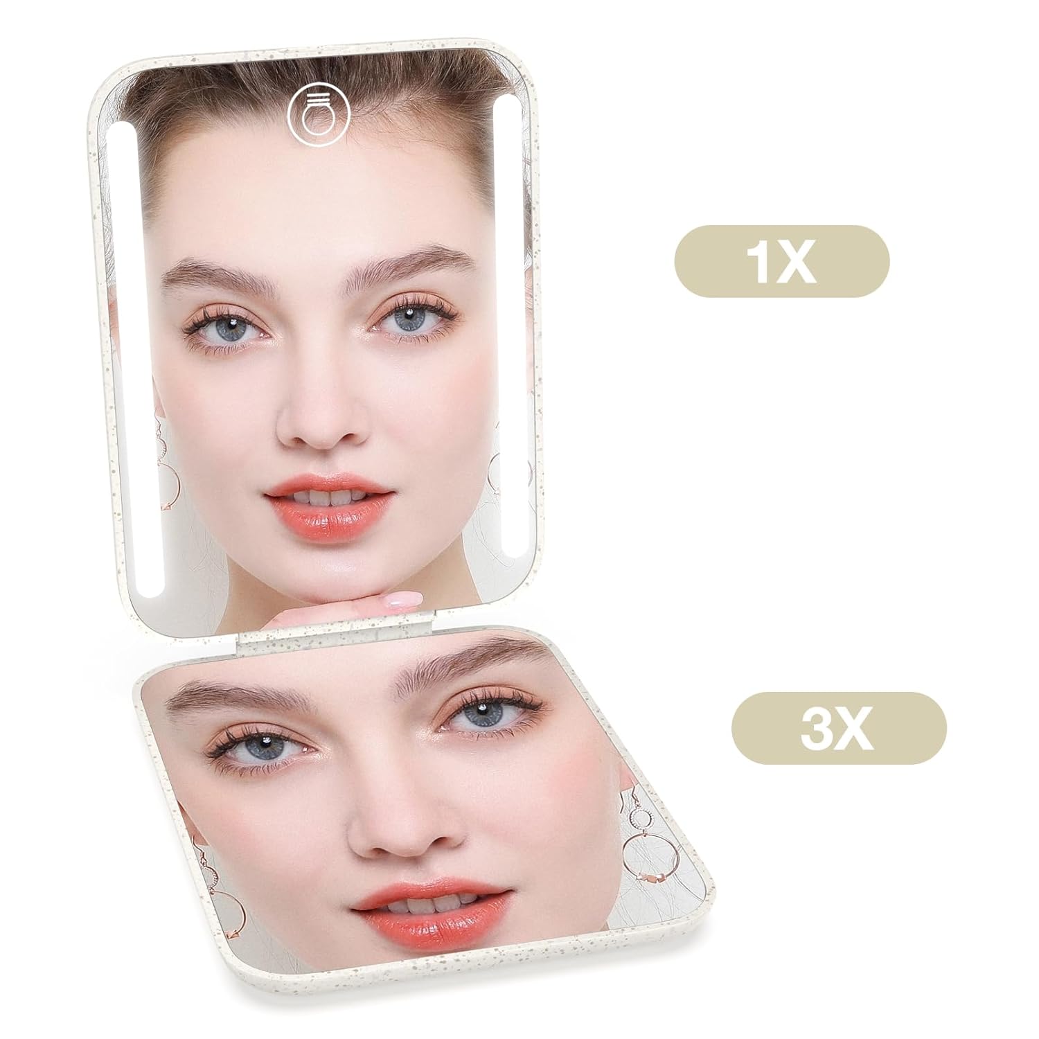 Kintion Rechargeable Pocket Mirror, Wheat Straw Material 1X/3X Magnification Portable Compact Mirror, Handheld Travel Mirror, Small Purse Mirrors for Women, Apricot