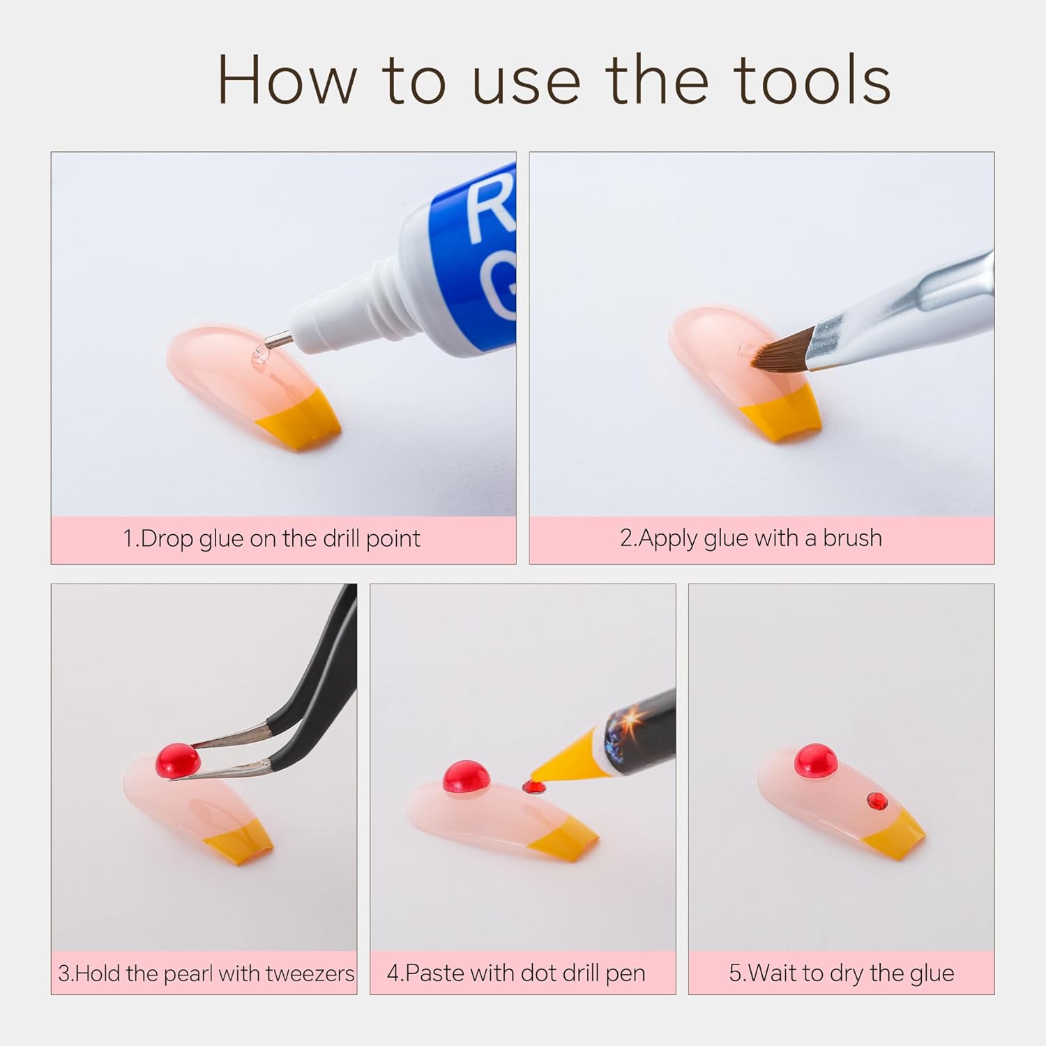 - Useful tools - These pearls and rhinestones have a flat back, which is excellent for easy placement.and you can pick up any large or small pearls and rhinestones with the crayons we bring along. And use the brush to smooth out the Gel, these tools will work very well