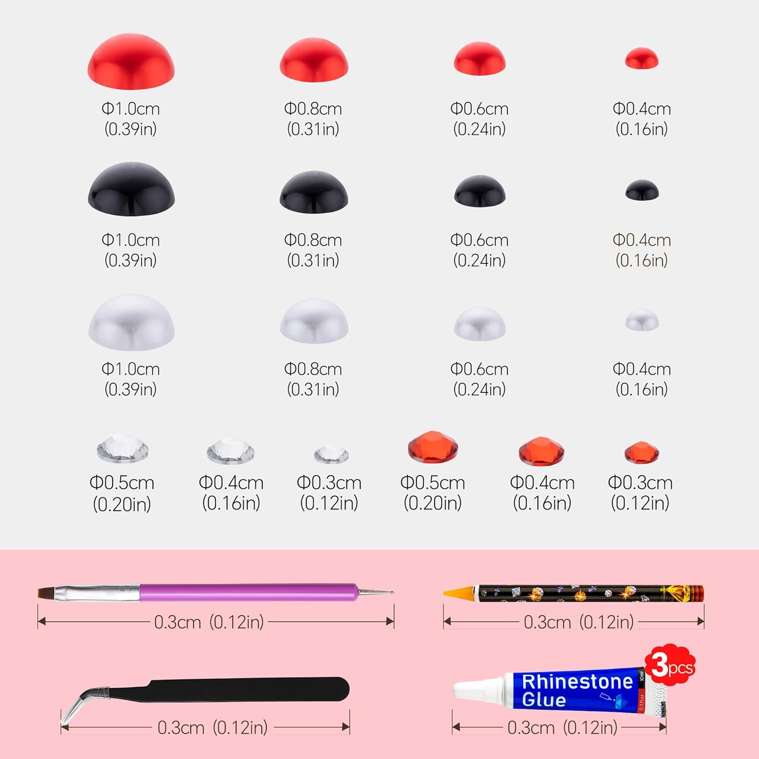 - What You Will Receive: 60g(30g*2)mixed size flat back pearls and rhinestones. 3*Rhinestone Glue. 1* wax pencil for rhinestones. 1*Pencil sharpener(color random). The mix half round pearls and rhinestones can make more beautiful handicrafts for your friends, parents, yourselfs on any festivals.If you need a mixed size pack of pearl rhinestones