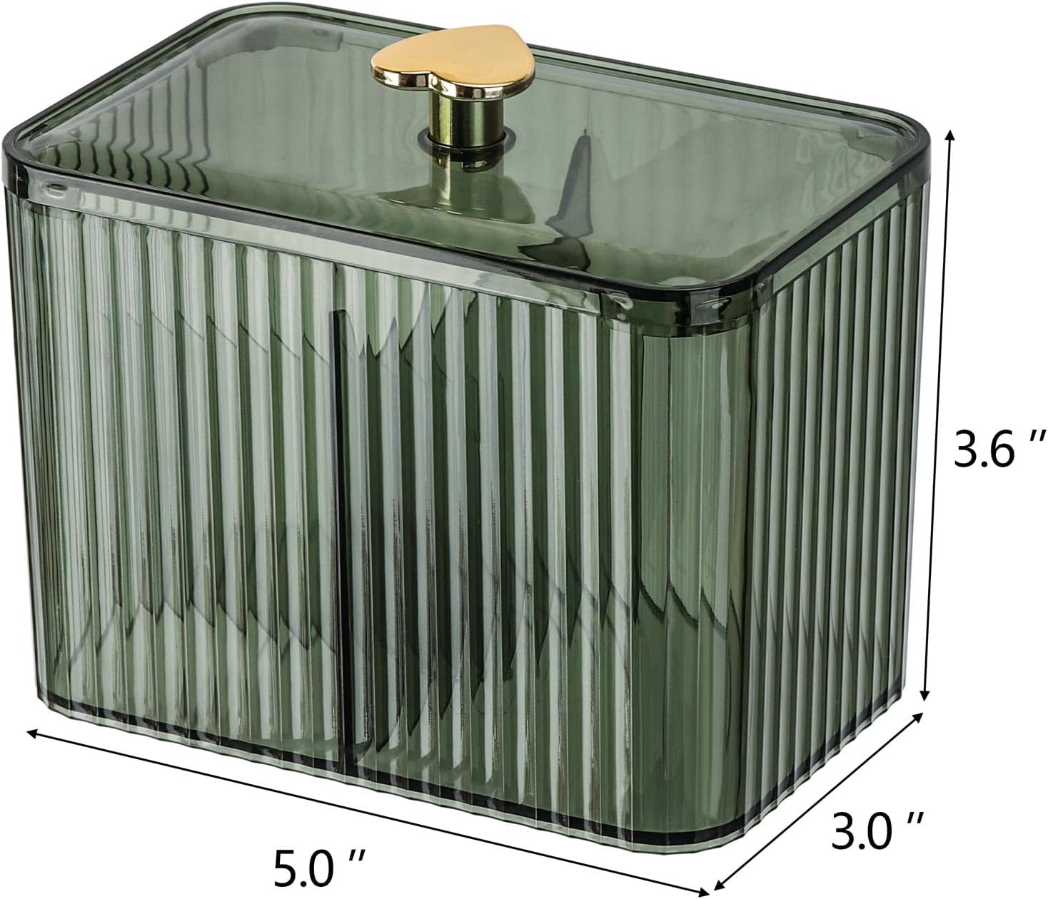 Tbestmax Qtip Holder Dispenser 3-Section Clear Cotton Swab/Pad/Ball Holder Container 3 Grids Bathroom Organizer Jar Cosmetics Storage for Vanity(Green)