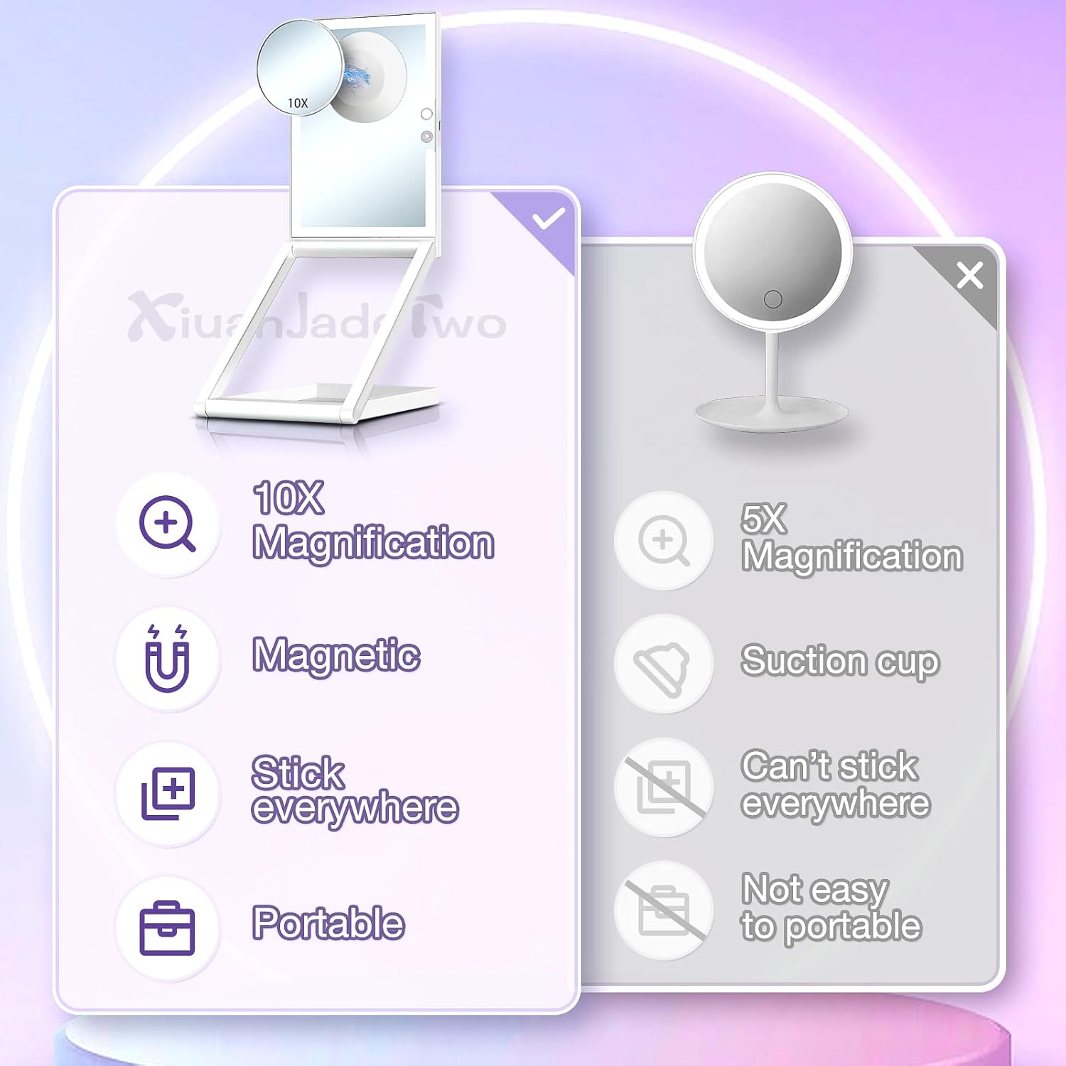 - PERFECT GIFT FOR LOVER:Our lighted makeup mirror with magnification possesses patents and quality guaranteed, made of high-quality ABS and glass material, without any magnification and distortion. It's an ideal gift for your girlfriend, mother, or beloved wife.