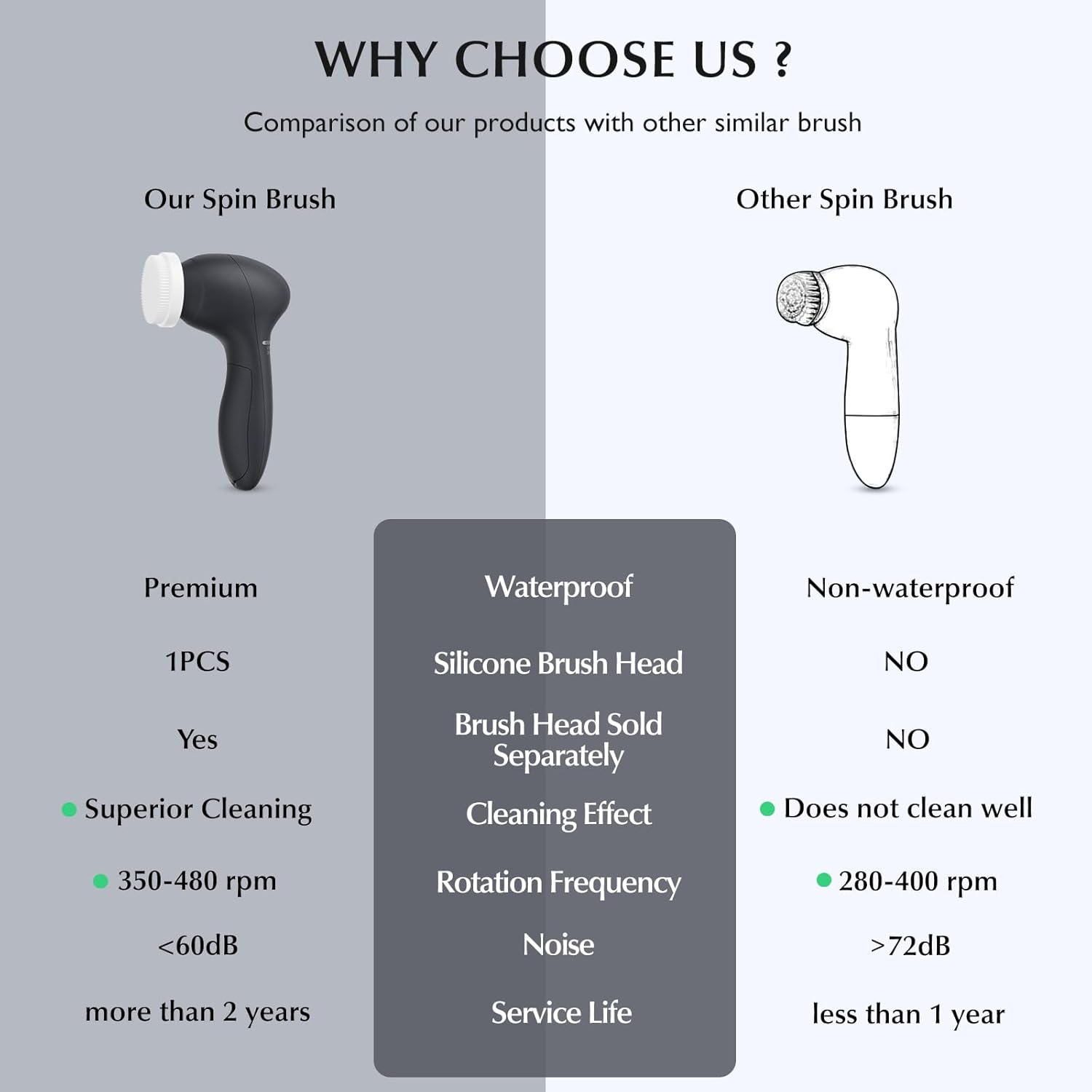 - SUPERIOR PERFORMANCE & DURABLE: We are committed to making the quality better through experimental comparison. The motor of our face brush far exceeds the market level, provides twice the power of regular roating brushes. It is equipped with three cleansing bristle brush heads for replacement to ensure clean use as well as a durability to make your skin healthier