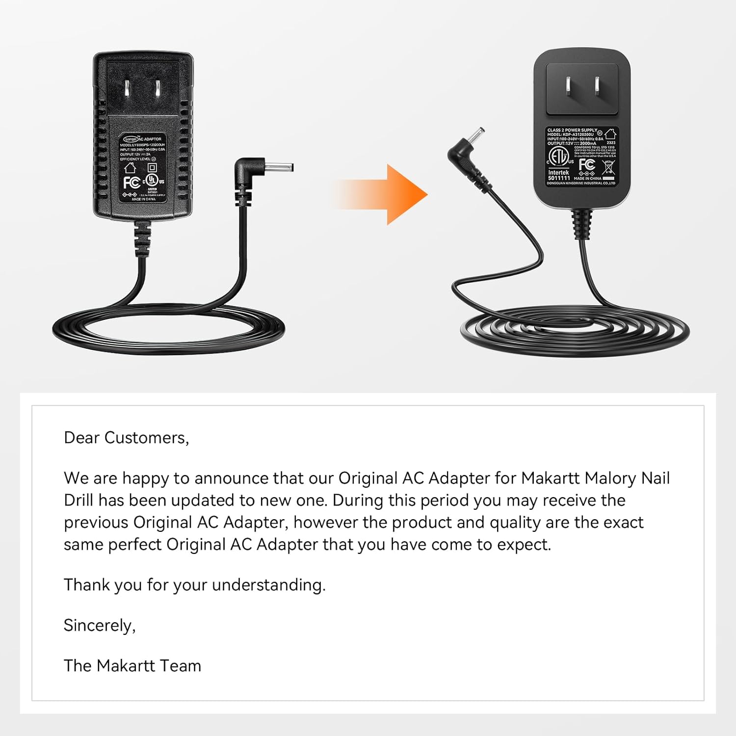 - Warm Tips: This charger adapter is only compatible with Makartt's Malory nail drill. Please confirm the brand and model of your nail drill before placing an order.