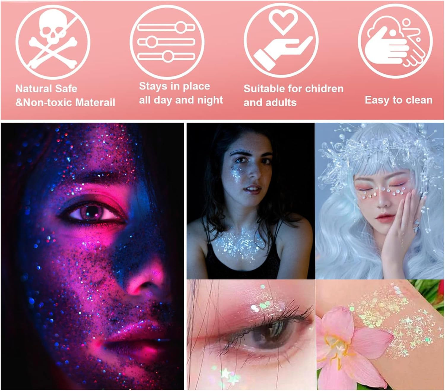 - Recommended Uses For Product : ['Body Makeup', 'Face 'Hair Decoration', 'Festival Rave Accessories']