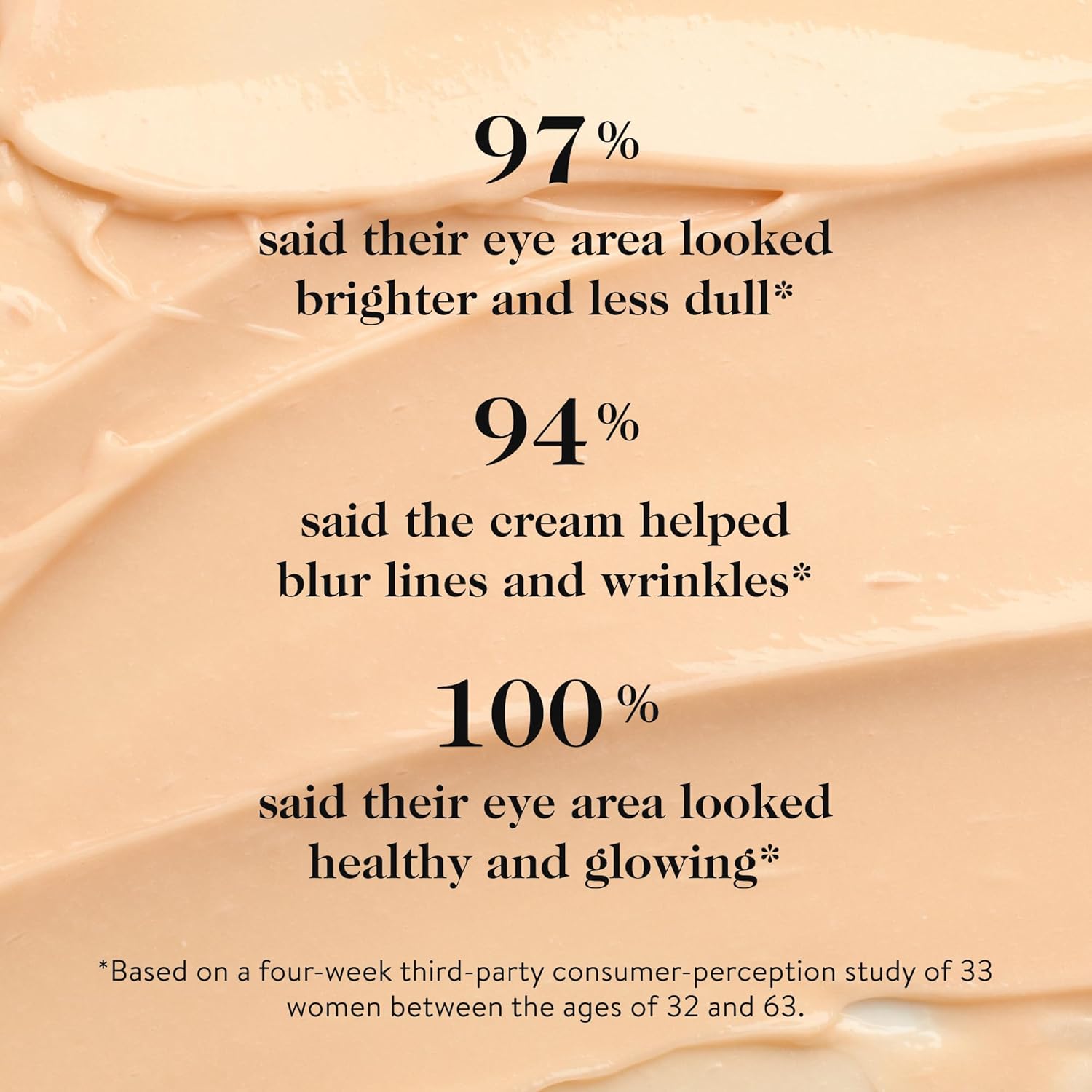 - Clinical Results: After 4 weeks, 100% agreed the eye area felt hydrated, 97% agreed the eye area looked brighter and less dull, and 94% agreed the product helped blur fine lines and wrinkles.*
