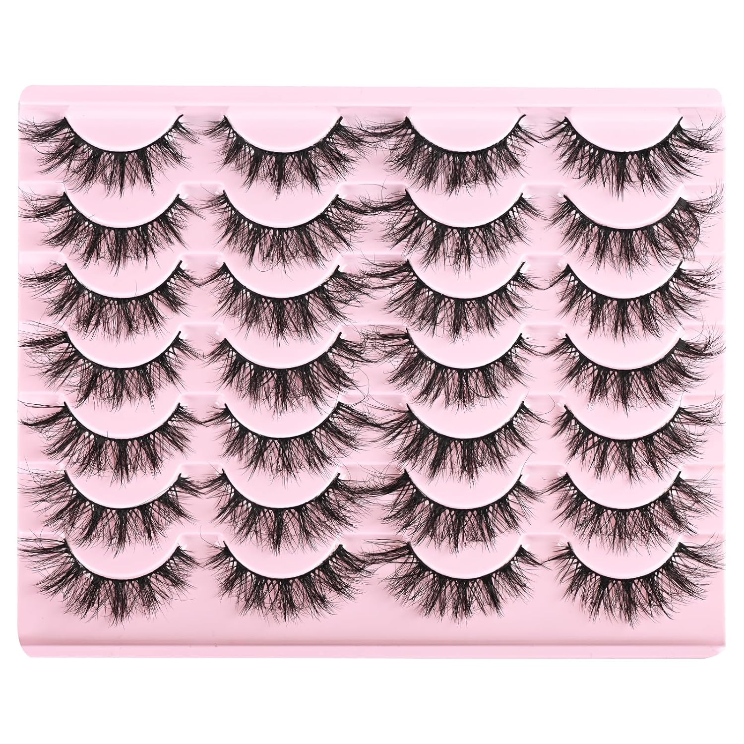 FARRED Cat Eye Lashes Short Natural Eyelashes 15mm Fluffy Wispy Strip Eyelash 14 Pairs Cute Natural Fake Lashes Packs Small Full Pestañas Set (F10 | 9-15mm)