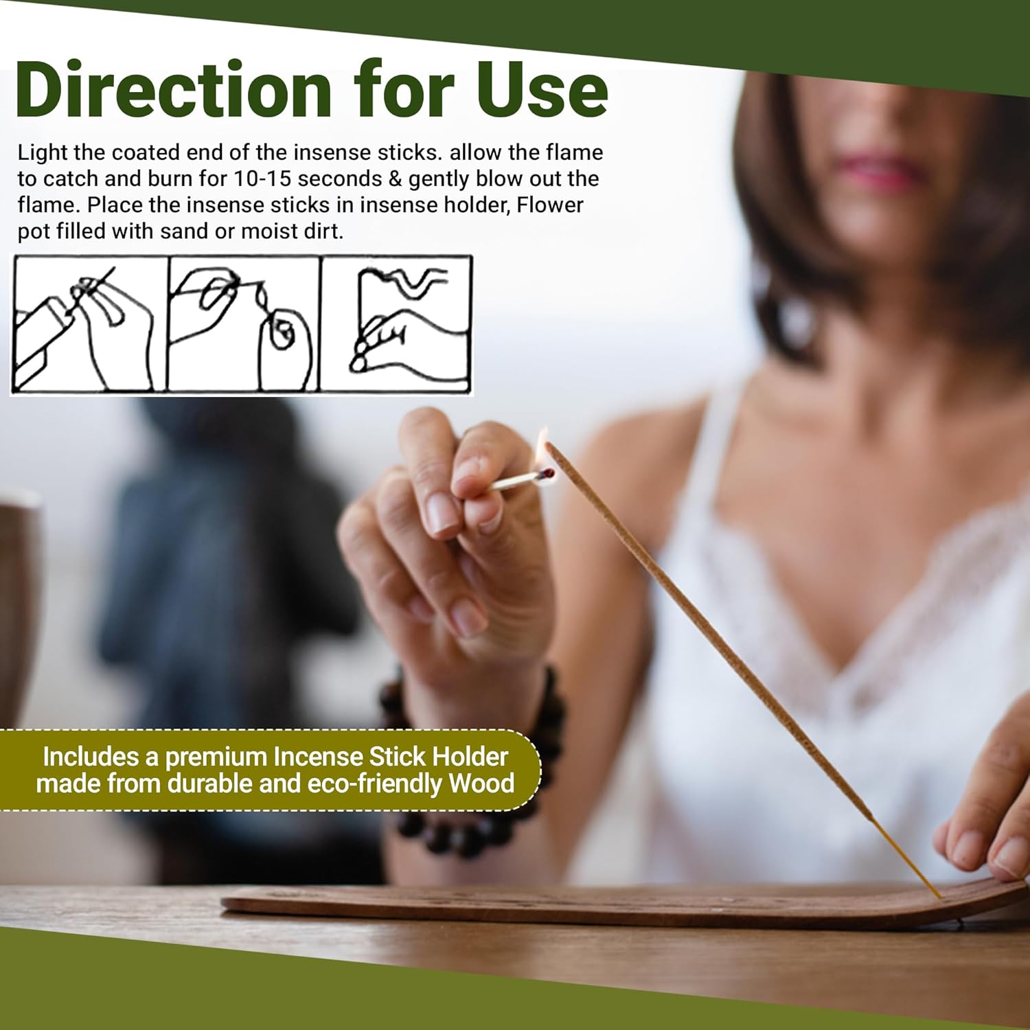 - Includes Free Wooden Holder – Yuvora incense sticks natural set includes a durable wooden incense holder designed to catch ash and complement any décor. No need for separate purchases—enjoy a hassle-free burning experience!