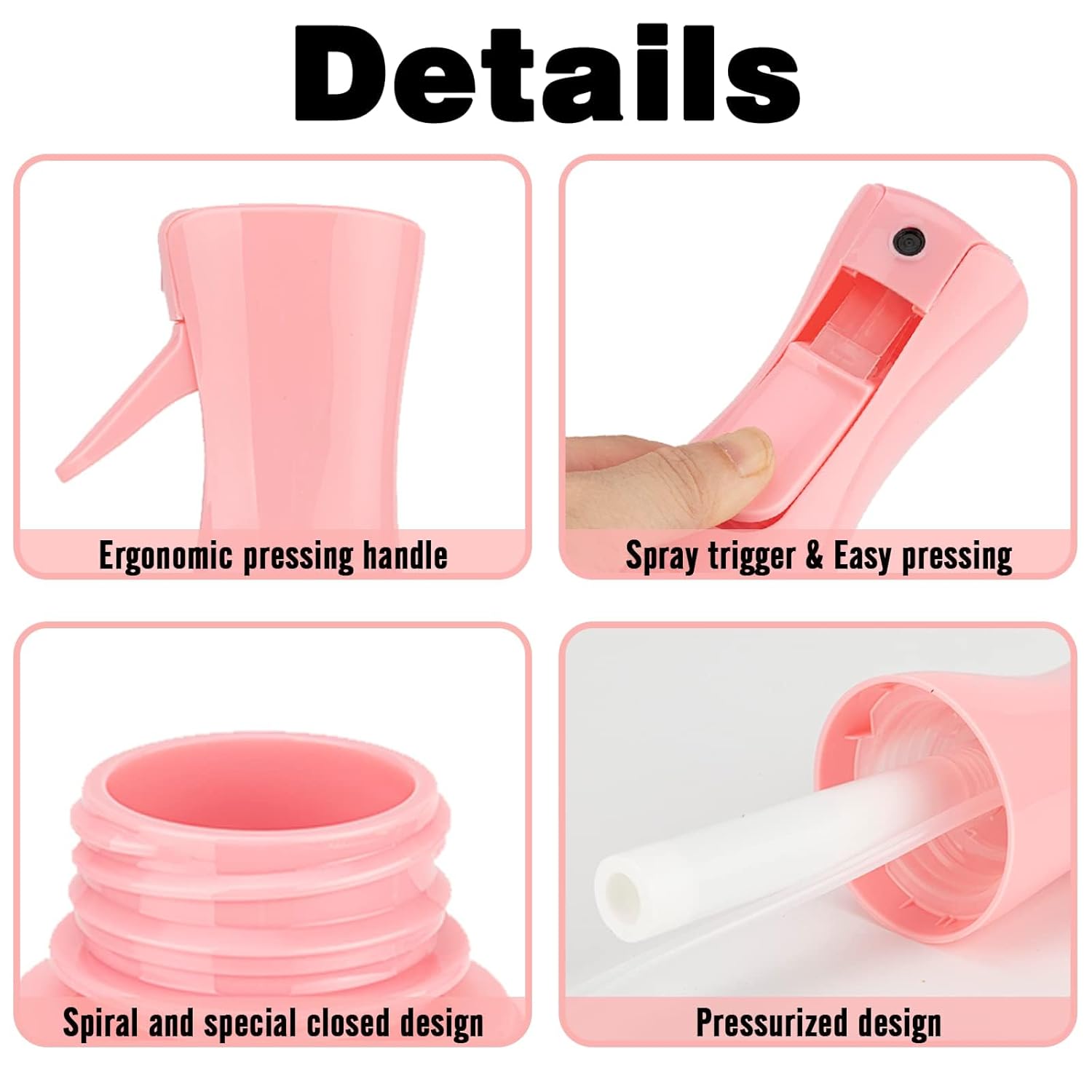 - 【High Quality】The continuous mist spray bottle is made of quality PET material with advanced technology, strong and not easily dented, durable and refillable. BPA-free, no smell, no leakage, and refillable. If anything goes wrong with your continuous spray bottle, please contact us directly.