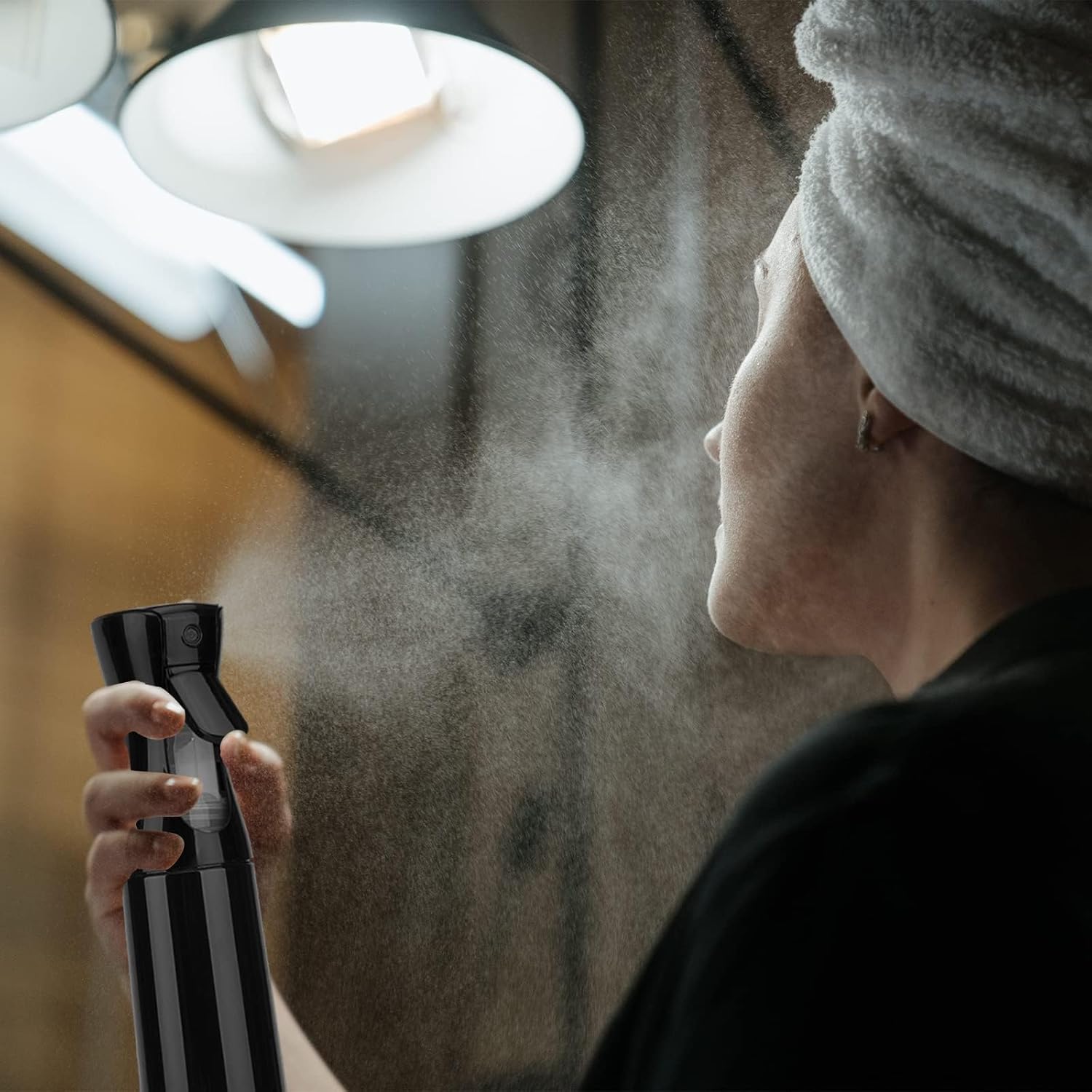 Spray Bottle for Hair (6.8OZ /200ML) Continuous Ultra Fine Mist Sprayer for Hair, Salons, Barber, Plants, Skin Care, Cleaning 2 Pack Black