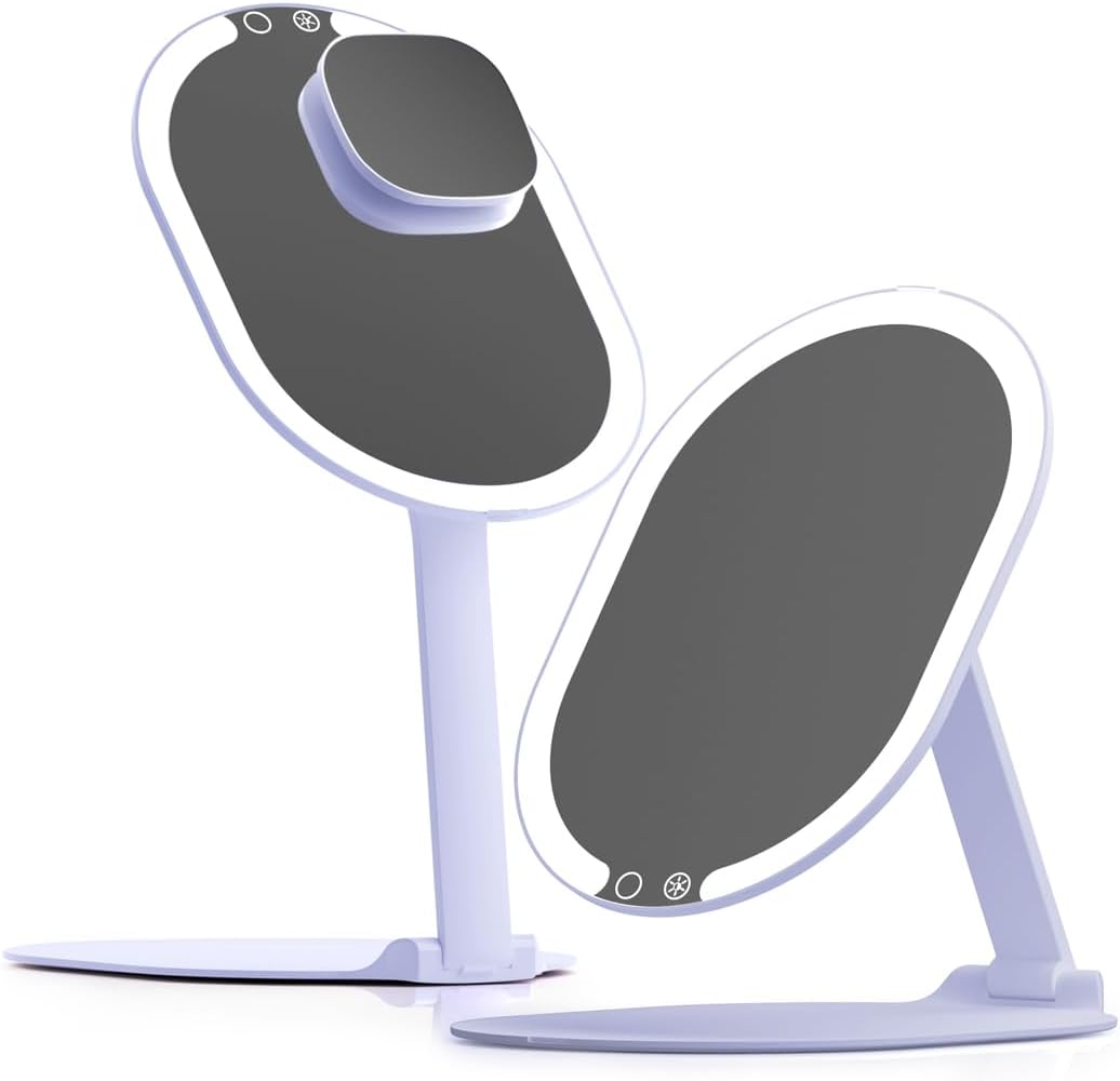 Fancii LED Rechargeable Portable Makeup Mirror with 3 Color Light Settings & 10x Magnetic Magnifying Mirror – Ultra Slim, Foldable Travel Vanity Mirror, 1500 mAh Battery, Height (Purple)