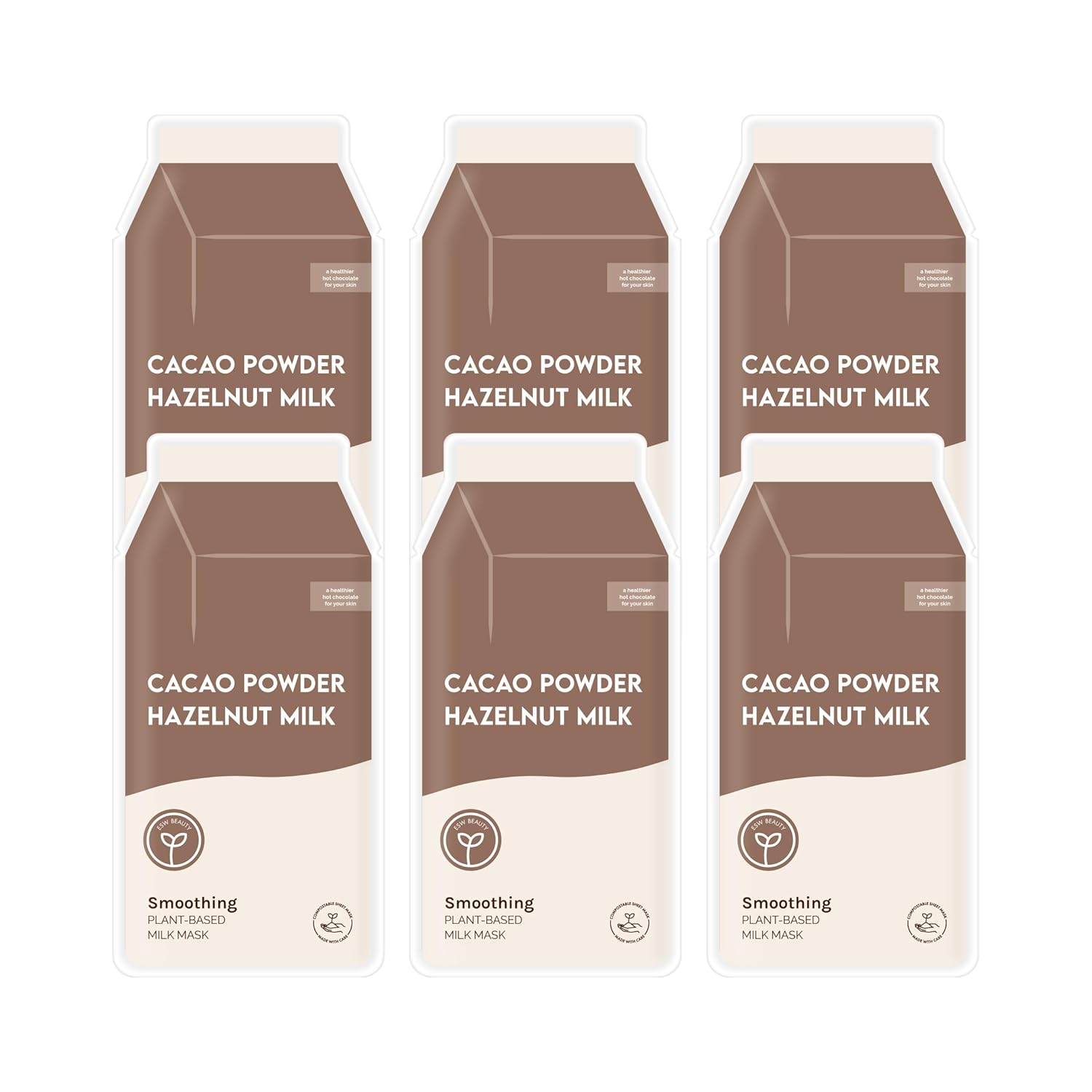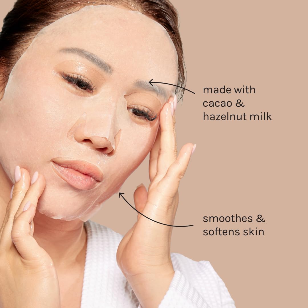 ESW Beauty Cacao Powder – Smoothing Plant-Based Milk Face Mask (6-Pack) – Cacao & Hazelnut for Aging & Sensitive Skin – Plumps, Softens & Promotes Youthful Complexion