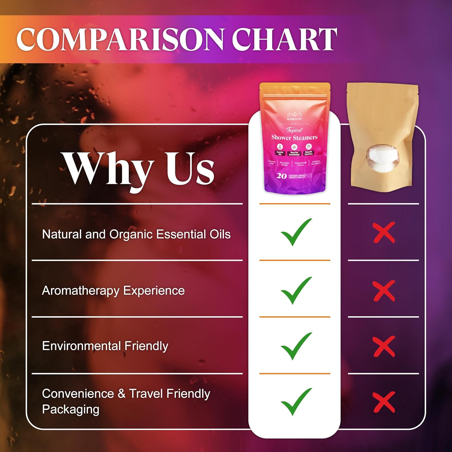 Shower Steamers Aromatherapy | 20 Pack Shower Steamers for Women & Men, Essential Oils for Stress Relief, Self Care, Gifts for Mom, Birthday, Stocking Stuffers & Christmas (Tropical)