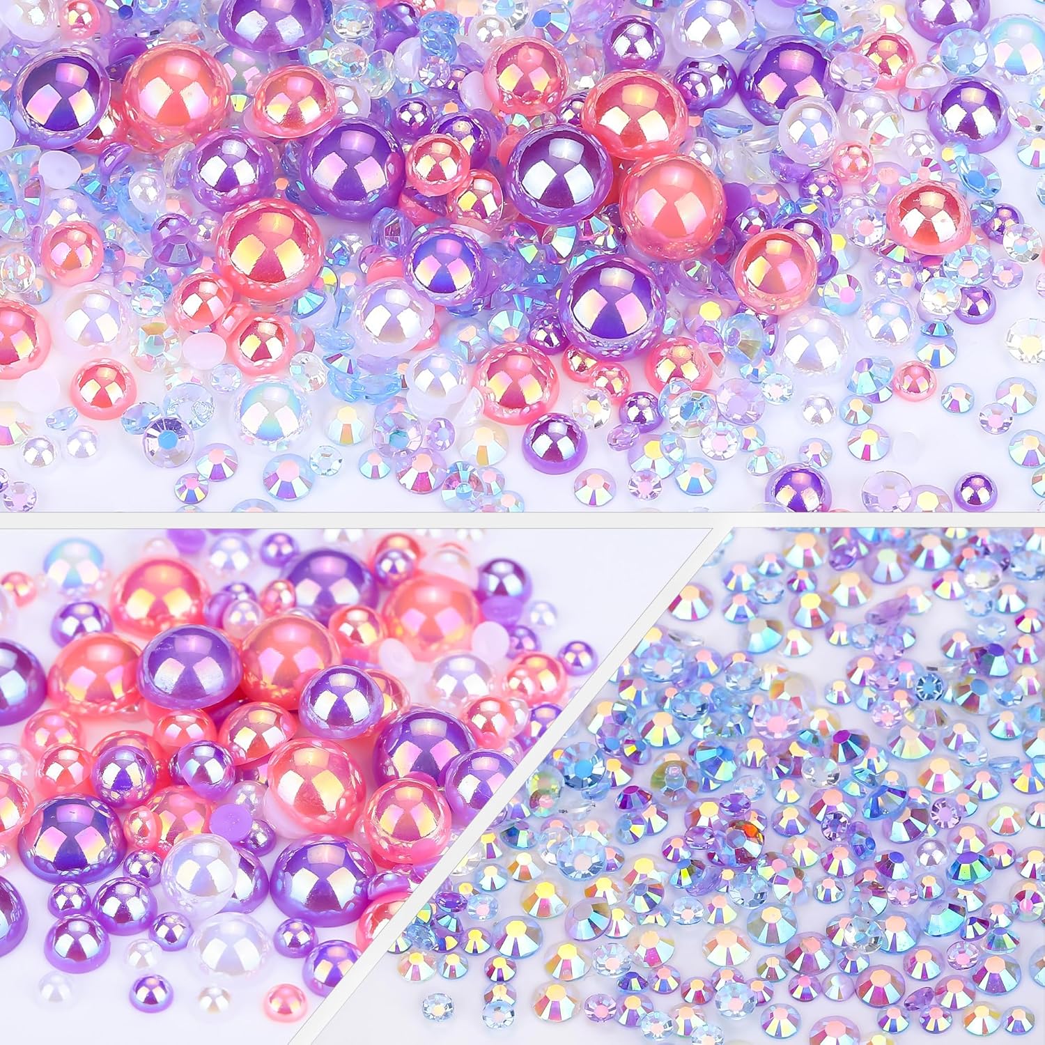 - Assortment Sizes: The flatback half pearls come in a mixture of colors and sizes of 3/4/5/6/8/10mm. The flatback rhinestones are resin rhinestones in sizes of 2/3/4/5/6mm. These mixes are such a great way to get an assortment of colors and sizes without having to buy each item individually